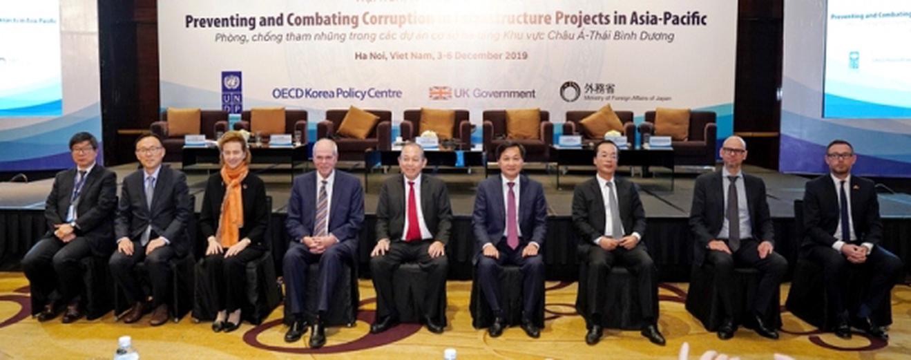 Phó Thủ tướng Thường trực Trương Hòa Bình (thứ 5 từ phải sang), Tổng Thanh tra Chính phủ Lê Minh Khái (thứ 4 từ phải sang) tham dự Hội nghị lần thứ 10 về Sáng kiến PCTN khu vực châu Á - Thái Bình Dương. Ảnh: PV