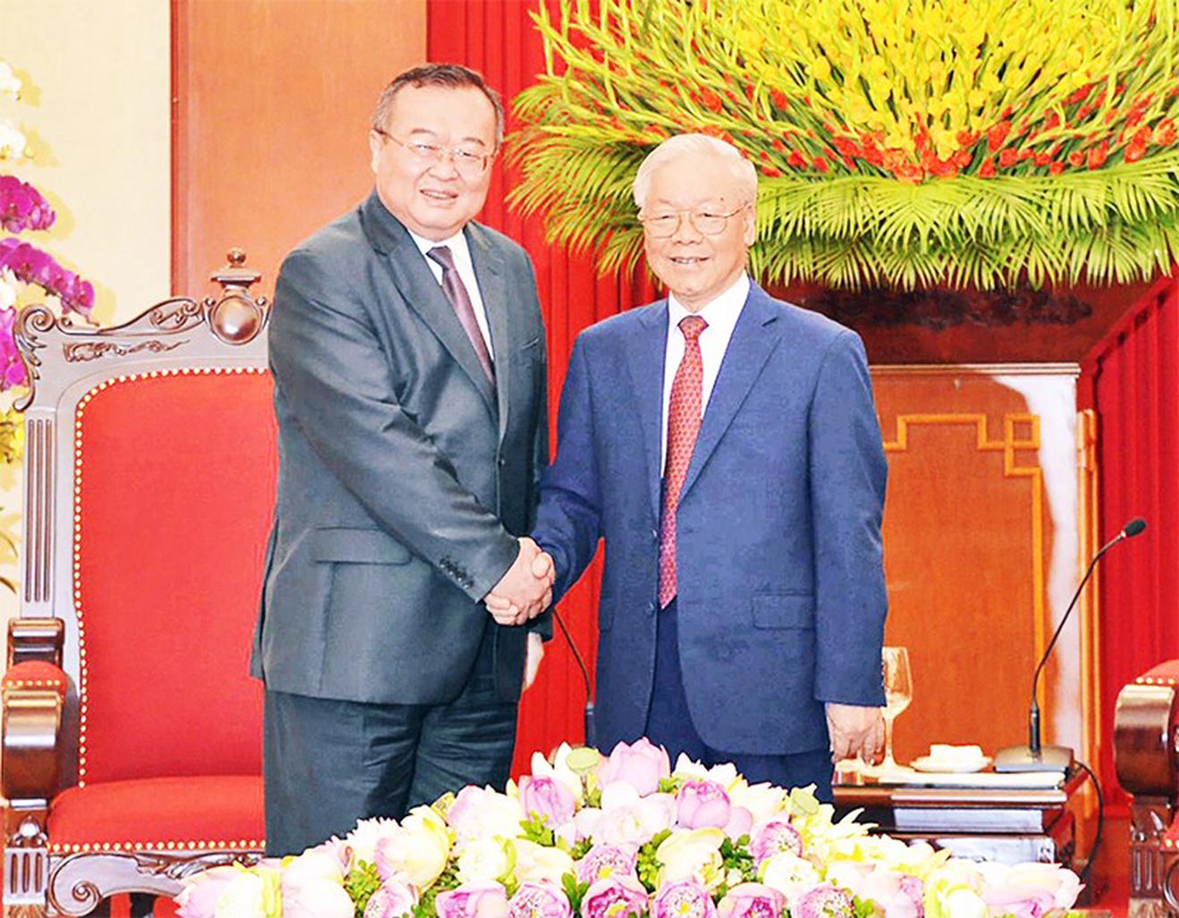 Sáng 5/9, tại Trụ sở Trung ương Đảng, Tổng Bí thư Nguyễn Phú Trọng tiếp đồng chí Lưu Kiến Siêu, Ủy viên Trung ương Đảng, Trưởng Ban Liên lạc Đối ngoại Trung ương Đảng Cộng sản Trung Quốc thăm và làm việc tại Việt Nam. Ảnh: Văn Hiếu/https://nhandan.vn/
