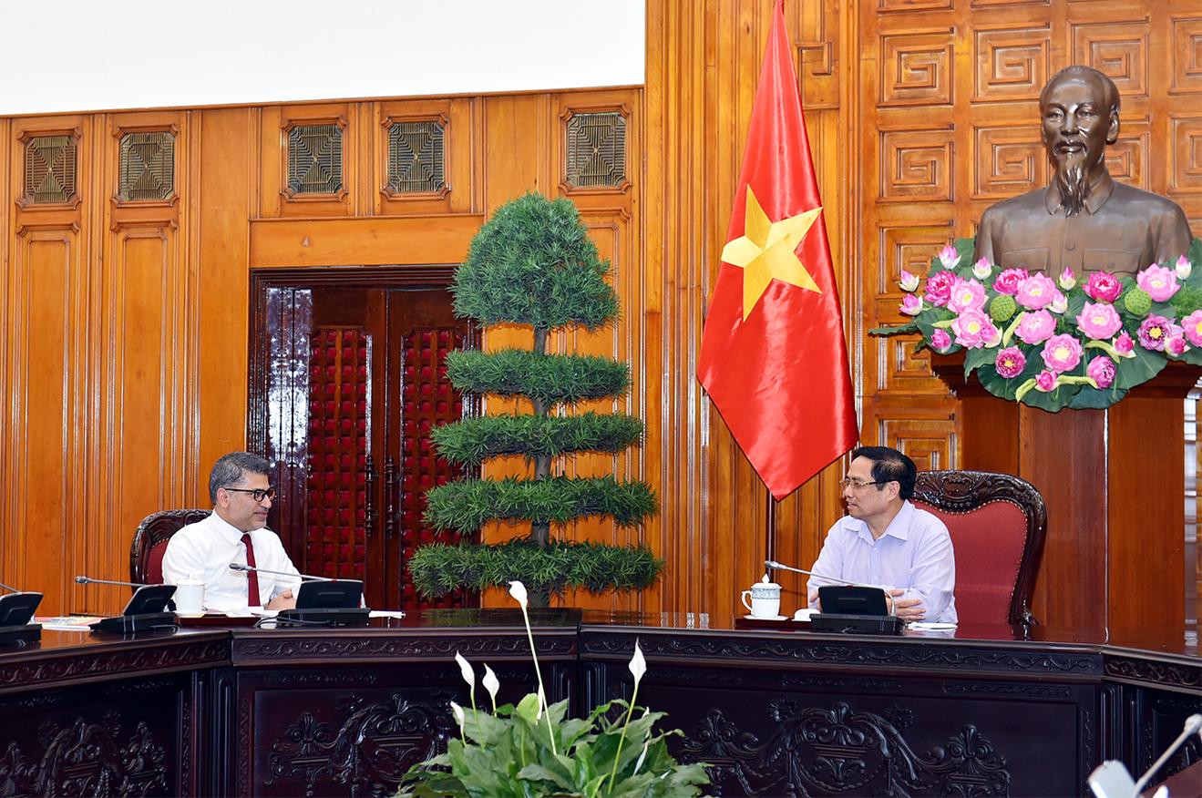 Buổi làm việc diễn ra trong bầu không khí cởi mở, chân thành, thẳng thắn, hiểu biết lẫn nhau. Ông Nitin Kapoor đánh giá cao nỗ lực của Chính phủ Việt Nam trong thực hiện chiến lược vaccine vì sức khỏe của nhân dân và phát triển kinh tế-xã hội với nhiều kết quả tích cực trong bối cảnh các nước trong khu vực gặp nhiều khó khăn bởi đại dịch; đánh giá cao sự quyết liệt và nhất quán của Chính phủ, Thủ tướng Chính phủ trong việc kiên trì thực hiện “mục tiêu kép” với tinh thần “chống dịch như chống giặc” và đang khẩn trương, quyết liệt triển khai có hiệu quả chiến lược vaccine.