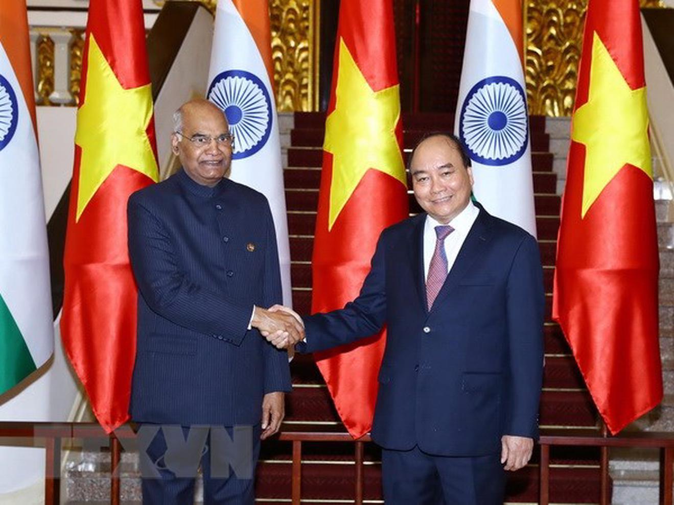 Thủ tướng Nguyễn Xuân Phúc hội kiến Tổng thống Cộng hòa Ấn Độ Ram Nath Kovind đang thăm cấp Nhà nước Việt Nam. (Ảnh: Thống Nhất/TTXVN)