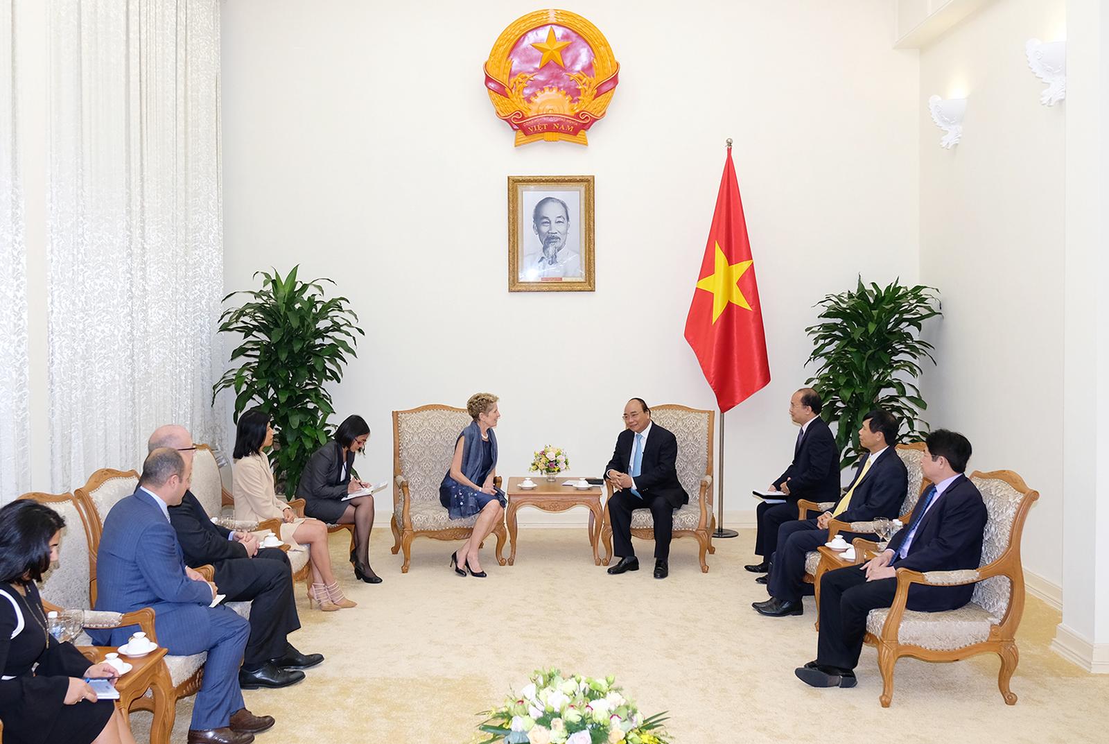 Chiều 6/12, tại Trụ sở Chính phủ, tiếp bà Kathleen Wynne, Thủ hiến bang Ontario (Canada), Thủ tướng Nguyễn Xuân Phúc đề nghị hai bên thúc đẩy hơn nữa thương mại, đầu tư.