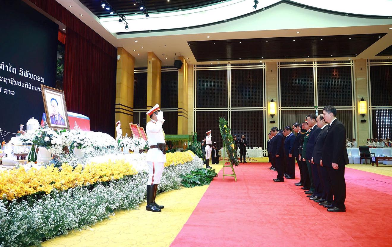 Trong không khí trang nghiêm, thay mặt Đảng, Nhà nước và Nhân dân Lào, các nhà lãnh đạo cấp cao Lào chân thành cảm ơn và bày tỏ niềm xúc động lớn khi Đảng, Nhà nước và Nhân dân Việt Nam đã chia buồn về việc đồng chí Khamtay Siphandone từ trần.