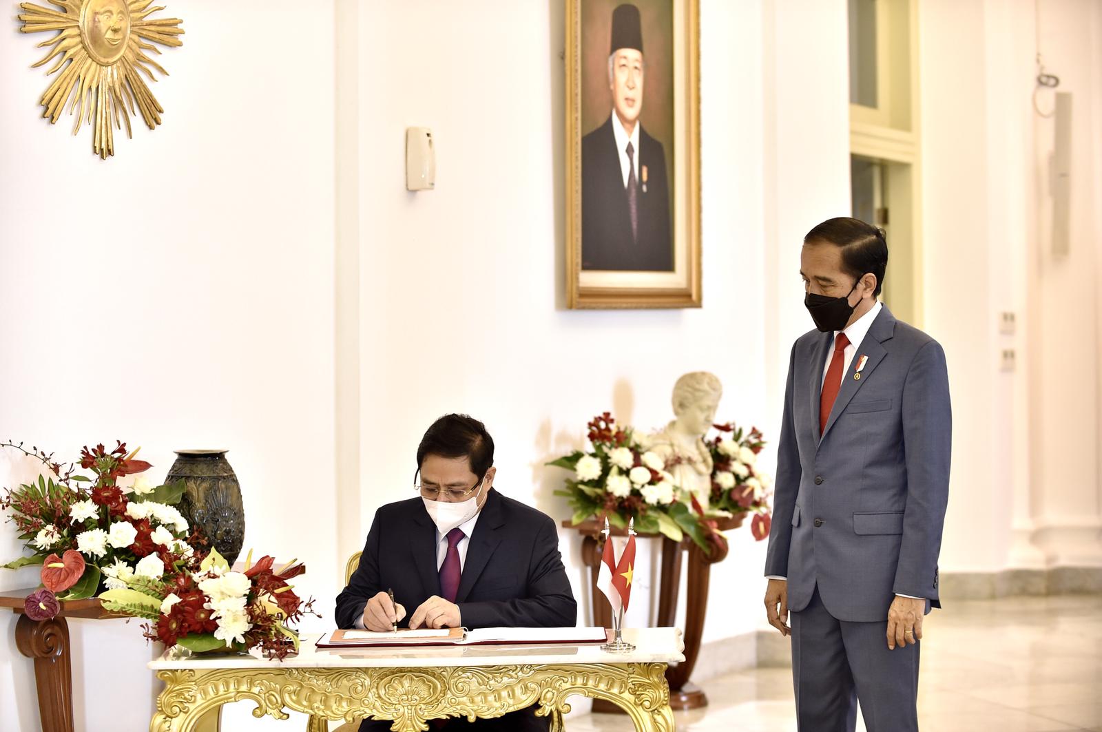 Thủ tướng Phạm Minh Chính và Tổng thống Indonesia Joko Widodo dành nhiều thời gian để trao đổi về các biện pháp thúc đẩy quan hệ hợp tác kinh tế song phương, sớm đưa kim ngạch thương mại song phương đạt 10 tỷ USD theo hướng giảm nhập siêu của Việt Nam. Hai bên nhất trí sớm nối lại các đường bay vào thời điểm phù hợp và xem xét tạo điều kiện cho Vietjet Air mở các đường bay từ Hà Nội và Thành phố Hồ Chí Minh đến Jakarta; thúc đẩy hợp tác trong lĩnh vực sản xuất dược phẩm; tăng cường hợp tác biển và đại dương, trong đó có hợp tác giữa các lực lượng cảnh sát biển hai nước. Hai Nhà Lãnh đạo khẳng định đặc biệt coi trọng sự cần thiết sớm hoàn tất đàm phán phân định ranh giới vùng đặc quyền kinh tế giữa hai nước để tạo hành lang pháp lý cho hai bên tăng cường hợp tác, giảm các vụ việc đánh bắt cá trái phép, tạo mô hình về giải quyết khác biệt trên biển giữa các quốc gia, góp phần giữ gìn hòa bình, hợp tác và phát triển trong khu vực, nhất là trên Biển Đông.