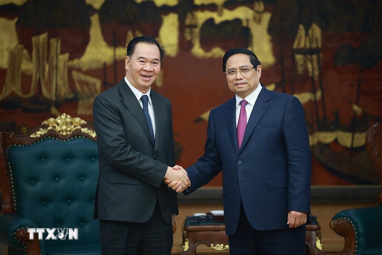 Thủ tướng Phạm Minh Chính tiếp Bộ trưởng Bộ Giáo dục và Thể thao Lào Thongsalith Mangnormek. Ảnh: TTXVN