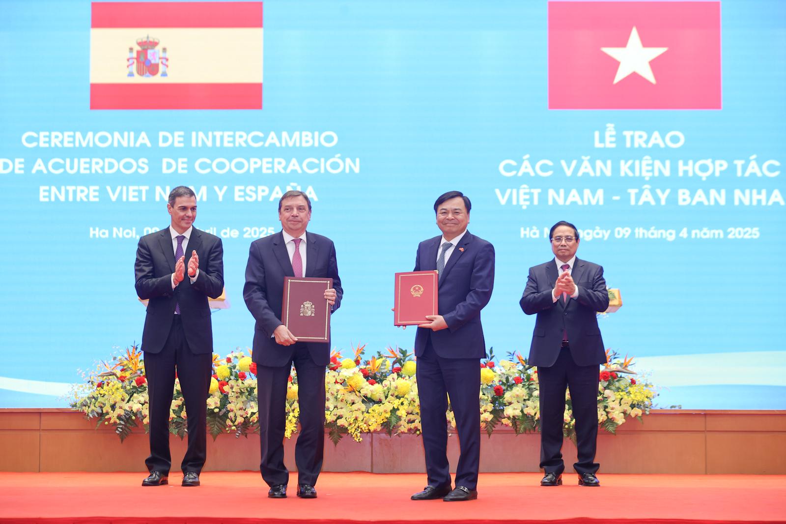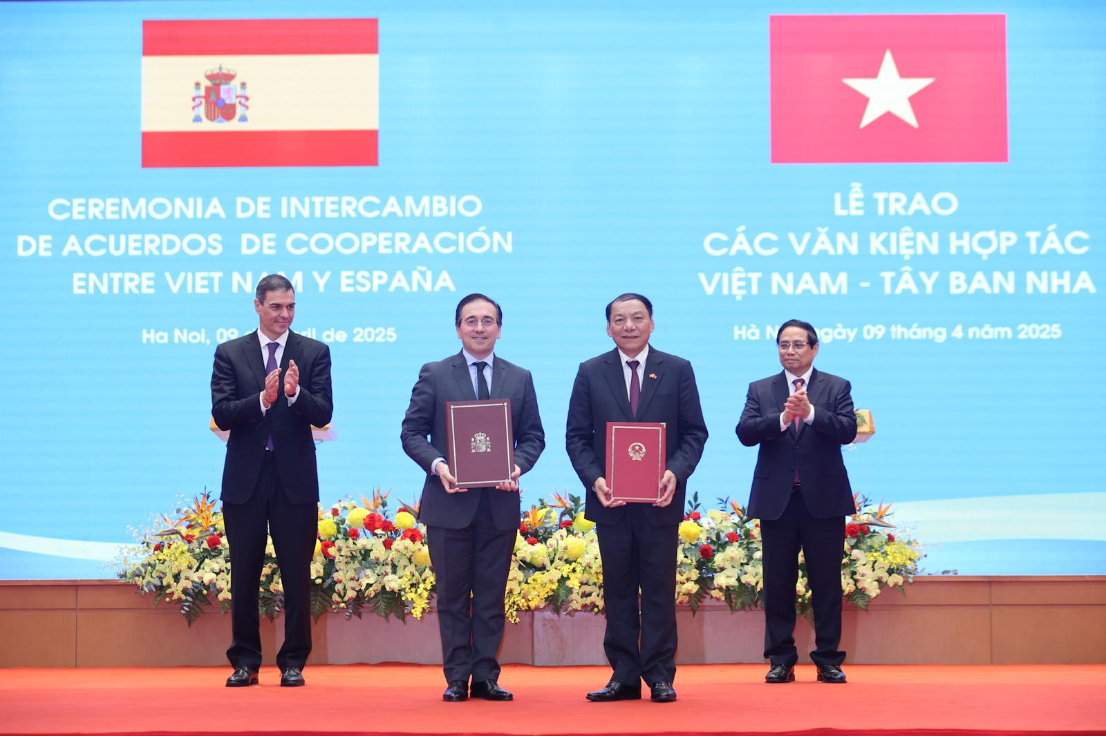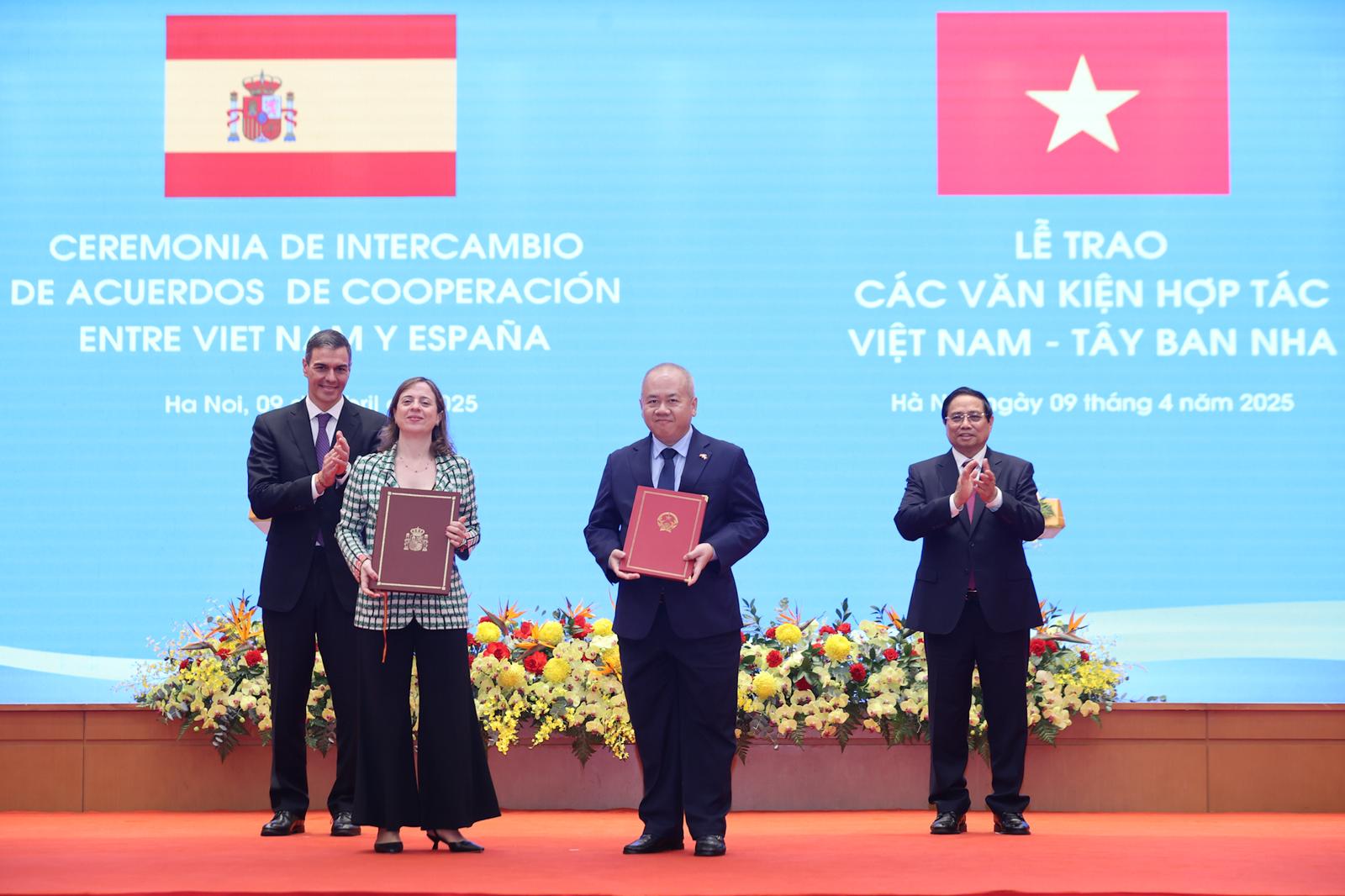 Trong khuôn khổ chuyến thăm chính thức Việt Nam từ ngày 8-10/4 của Thủ tướng Vương quốc Tây Ban Nha Pedro Sanchez, có nhiều văn kiện hợp tác giữa Việt Nam - Tây Ban Nha đã được trao.
