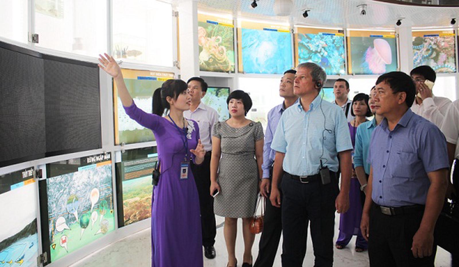 Chủ tịch UBND tỉnh Quảng Ninh Nguyễn Đức Long và các đại biểu của tỉnh nhiệt liệt chào đón Thủ tướng Dacian Ciolos. Chuyến thăm là dấu mốc quan trọng để củng cố thêm tình hữu nghị giữa hai bên, đồng thời mở ra nhiều cơ hội hợp tác mới giữa Việt Nam và Romania nói chung, Quảng Ninh với các địa phương của Romania nói riêng trong thời gian tới.Chủ tịch UBND tỉnh Quảng Ninh nhấn mạnh vị trí địa lý quan trọng, tiềm năng thế mạnh của tỉnh, nhất là trong phát triển ngành Công nghiệp và dịch vụ du lịch, kinh tế, thương mại. Do đó, đồng chí mong muốn có nhiều nhà đầu tư Romania đến thăm, tìm hiểu, nghiên cứu đầu tư vào các lĩnh vực vốn là thế mạnh của tỉnh như du lịch, khai thác mỏ...Thủ tướng Romania thăm Bảo tàng Quảng Ninh. Ảnh: TL Hiện tại và sắp tới, Quảng Ninh mong muốn có thêm nhiều cơ hội giới thiệu, quảng bá thế mạnh du lịch như Di sản thiên nhiên thế giới Vịnh Hạ Long, hệ thống di tích văn hóa, lịch sử… đến đông đảo người dân Romania, từ đó mở ra nhiều cơ hội hợp tác, đào tạo nguồn nhân lực với nước bạn. Mặt khác, Quảng Ninh mong muốn Thủ tướng Romania giới thiệu một địa phương của Romania có tiềm năng, thế mạnh tương đồng để hai bên có cơ hội giao lưu, hợp tác trao đổi…Thủ tướng Dacian Ciolos cảm ơn sự đón tiếp trọng thị của tỉnh Quảng Ninh và đồng chí Chủ tịch UBND tỉnh.Thủ tướng Dacian Ciolos đánh giá mục đích chuyến thăm này sẽ góp phần củng cố đẩy mạnh thêm tình hữu nghị hai bên, đồng thời thúc đẩy thêm cơ hội hợp tác giữa hai nước nói chung và tỉnh Quảng Ninh nói riêng.Sau buổi đón tiếp xã giao, Thủ tướng Romania và đoàn tùy tùng đã đến thăm Di sản thiên nhiên thế giới vịnh Hạ Long và Bảo tàng Quảng Ninh.Thế Lữ