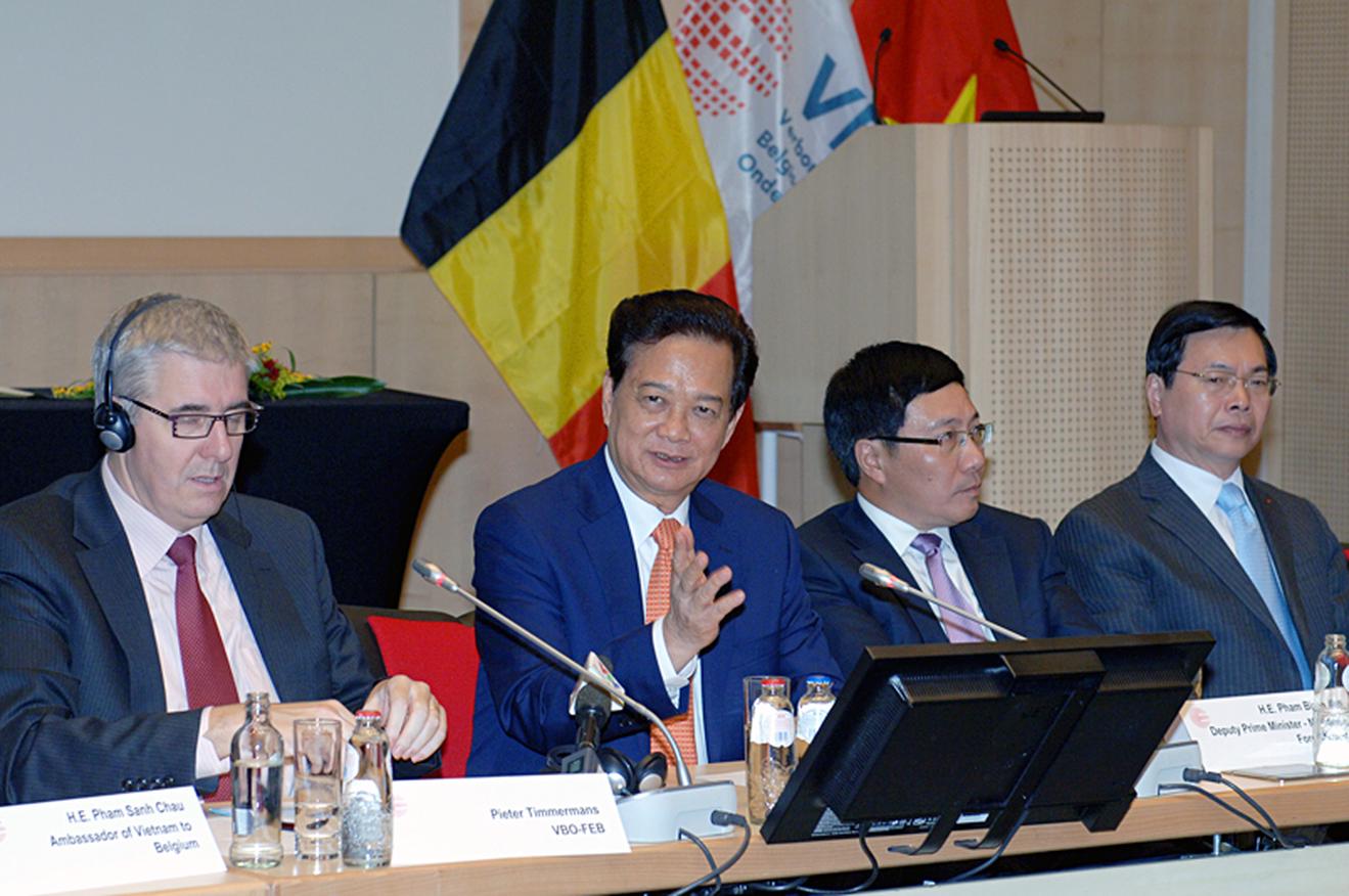 Trả lời câu hỏi của các nhà doanh nghiệp Bỉ về những ưu tiên của Việt Nam trong quá trình hội nhập quốc tế, cũng như độ mở của thị trường Việt Nam trong một số lĩnh vực, Thủ tướng Nguyễn Tấn Dũng nhấn mạnh: Sau khi gia nhập Tổ chức Thương mại Thế giới và tham gia 8 Hiệp định thương mại tự do, hiện Việt Nam đang tiếp tục đàm phán 6 Hiệp định thương mại tự do khác, trong đó có Hiệp định thương mại tự do với EU và Hiệp định đối tác xuyên Thái Bình Dương. Như vậy, Việt Nam đã và sẽ mở cửa tất cả các lĩnh vực cho các doanh nghiệp nước ngoài theo đúng lộ trình đã cam kết.