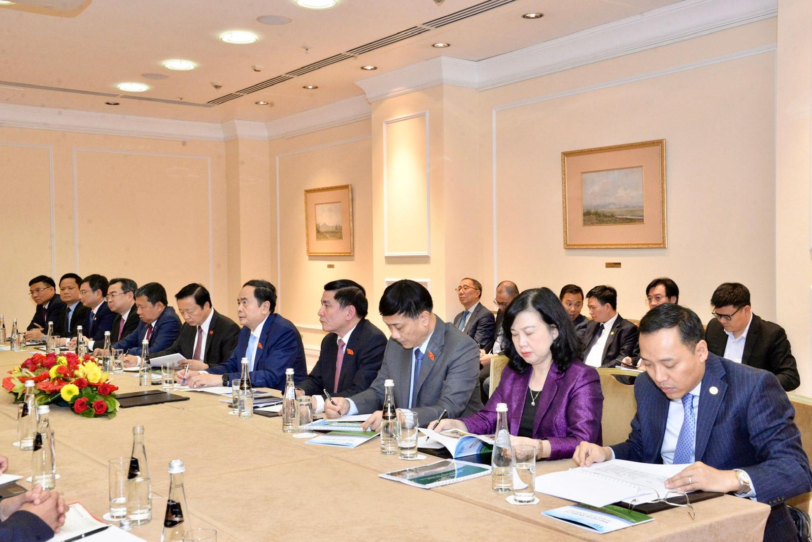 Nhất trí với đề nghị của ông Sergey Mironov, theo Chủ tịch Quốc hội, hai bên cần tăng cường hợp tác để kim ngạch thương mại hai chiều đến năm 2030 đạt 10 tỷ USD như mục tiêu đề ra.