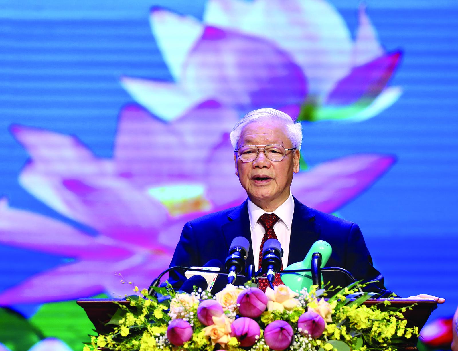 Tổng Bí thư Nguyễn Phú Trọng đọc Diễn văn tại Lễ kỷ niệm. Ảnh: Trí Dũng – TTXVN