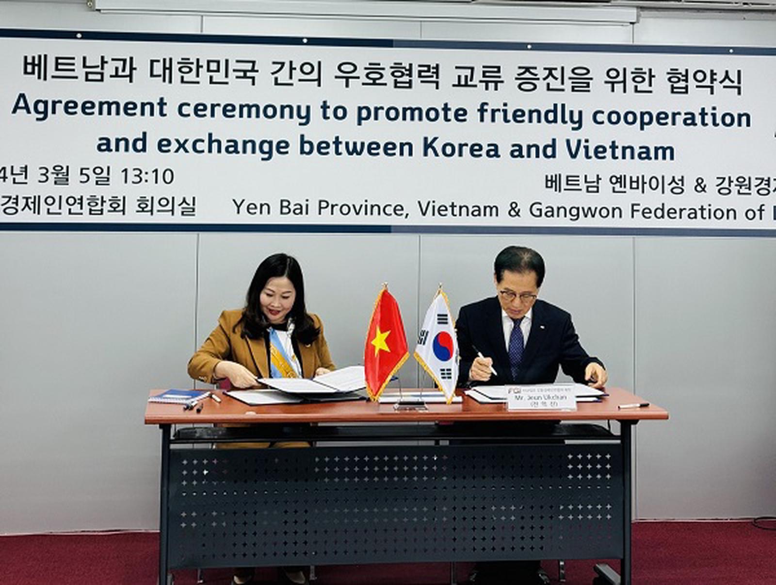 Chiều ngày 5/3/2024, làm việc với Liên đoàn Công nghiệp tỉnh Gangwon, bà Vũ Thị Hiền Hạnh, Phó Chủ tịch UBND tỉnh đã đại diện tỉnh Yên Bái ký biên bản ghi nhớ nhằm tạo điều kiện trao đổi về đầu tư thương mại góp phần cải thiện môi trường đầu tư kinh doanh giữa hai bên trên nguyên tắc tin cậy, bình đẳng, tôn trọng, thiện chí, hai bên cùng có lợi. Đồng thời góp phần củng cố mối quan hệ đối tác chiến lược toàn diện Việt Nam - Hàn Quốc.