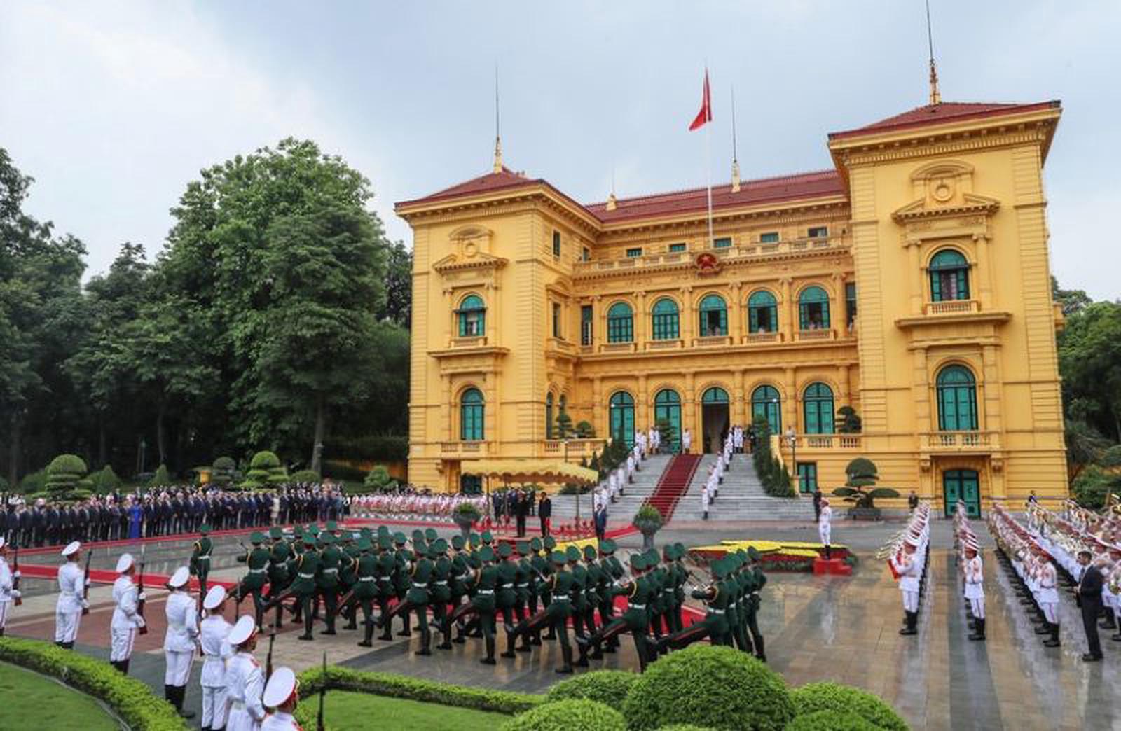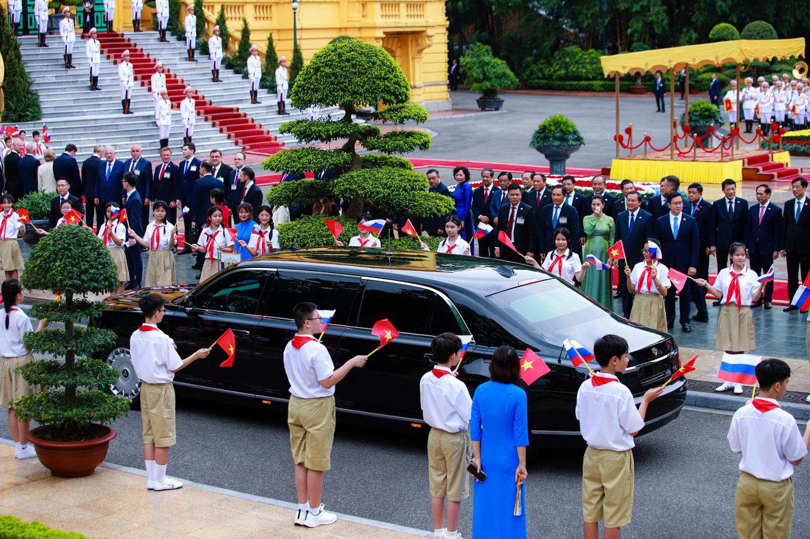 Lễ đón chính thức Tổng thống Nga Vladimir Putin được tổ chức trọng thể tại Phủ Chủ tịch theo nghi thức cao nhất dành đón nguyên thủ quốc gia. Ảnh: T.Đ