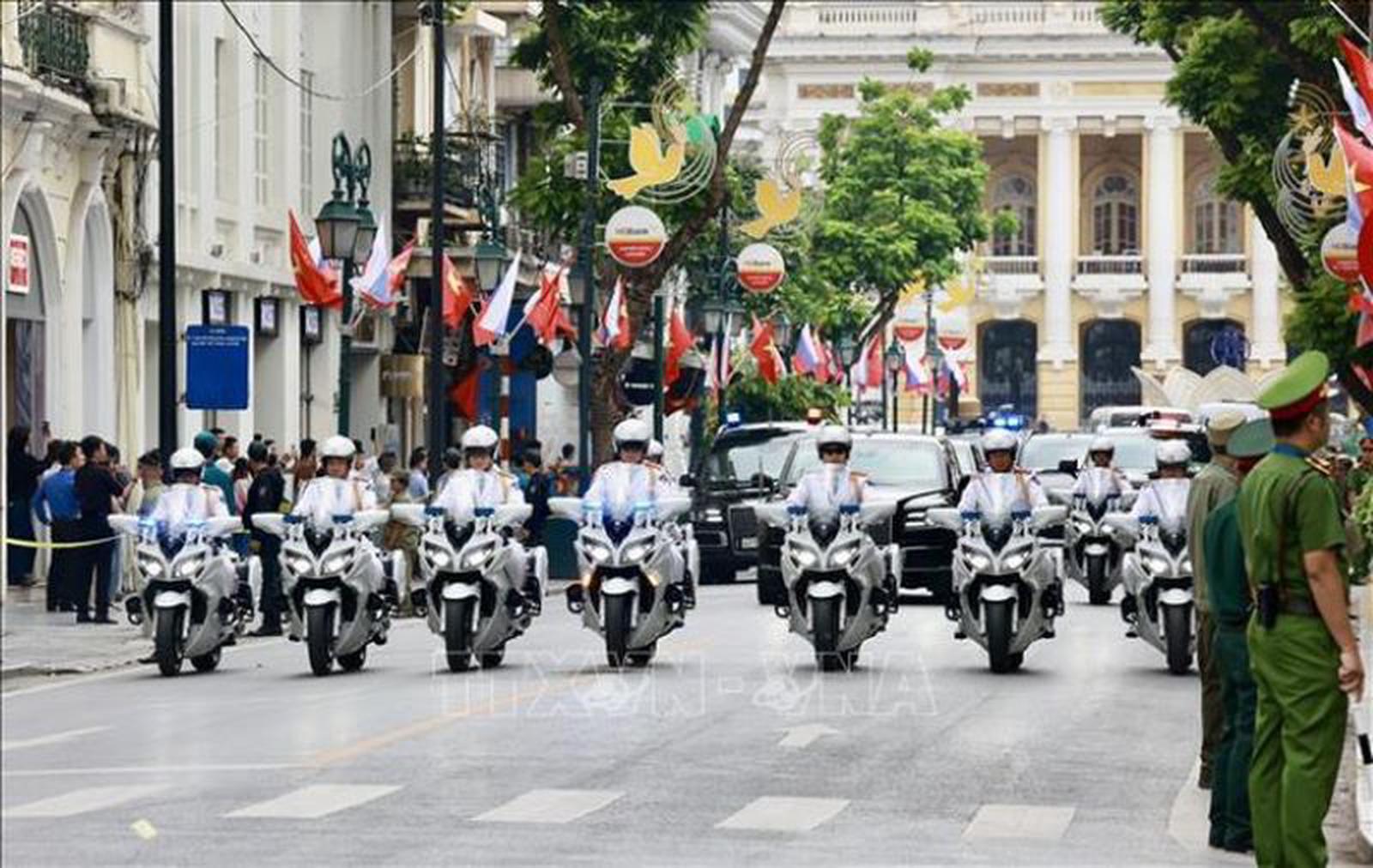 Xe chở Tổng thống Putin cùng đoàn hộ tống. Ảnh: TTXVN