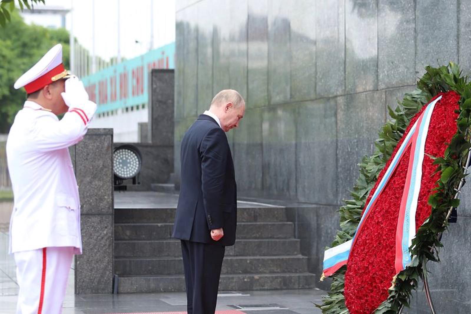 Tổng thống Nga Vladimir Putin đã đặt hoa tại Lăng Chủ tịch Hồ Chí Minh. Ảnh: T. Đạt