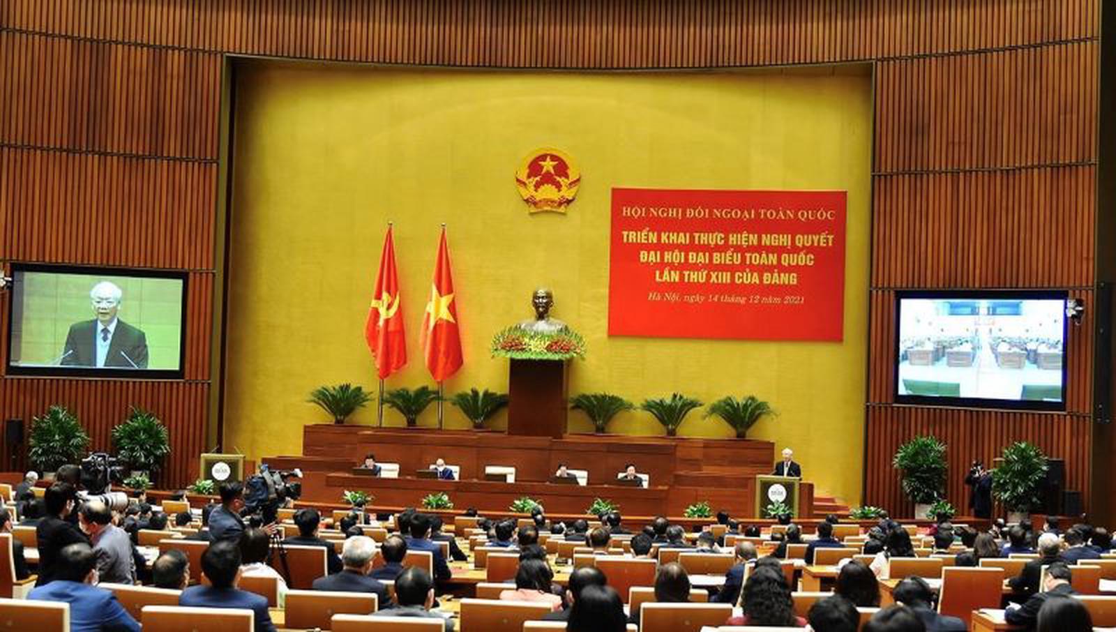 Tổng Bí thư Nguyễn Phú Trọng phát biểu chỉ đạo tại Hội nghị Đối ngoại toàn quốc năm 2021. Ảnh: T.A