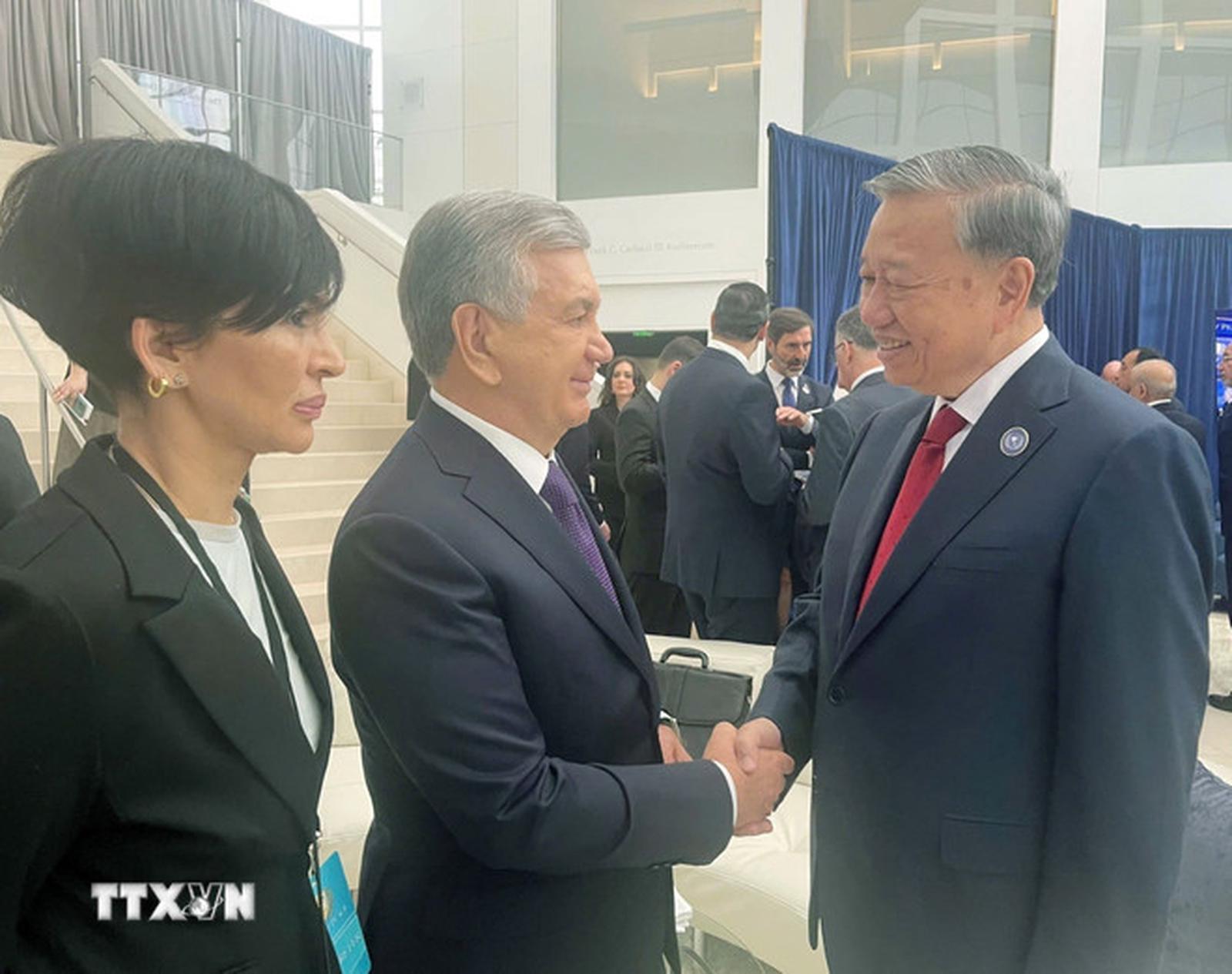 Trong thời gian dự Cuộc họp Khai mạc Hội đồng Hòa bình về Gaza, Tổng Bí thư Tô Lâm đã có các cuộc gặp, trao đổi với Tổng thống Indonesia, Tổng thống Uzbekistan, Tổng thống Ajerbaijan, Tổng thống Kazakhstan, Thủ tướng Campuchia, Thủ tướng Armenia, Thủ tướng Hungary, Thủ tướng Pakistan, Phó Thủ tướng kiêm Bộ trưởng Ngoại giao Cộng hòa Séc… Các đối tác đều nhất trí tăng cường quan hệ song phương thực chất, hiệu quả với Việt Nam, trong đó ưu tiên các lĩnh vực thuộc lợi thế, nhu cầu của mỗi bên như kinh tế, thương mại, khoa học - công nghệ, chuyển đổi số, chuyển đổi xanh, giao thông vận tải, hợp tác để ứng phó với các vấn đề.