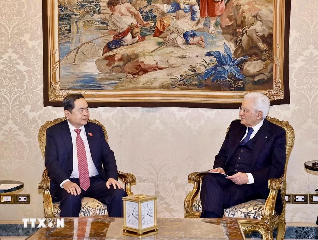 Tại cuộc gặp, Chủ tịch Quốc hội Trần Thanh Mẫn đã chuyển lời thăm hỏi của Tổng Bí thư, Chủ tịch nước Tô Lâm tới Tổng thống Sergio Mattarella; đồng thời chúc mừng những thành tựu quan trọng mà Italia đã đạt được dưới sự lãnh đạo của ngài Tổng thống.