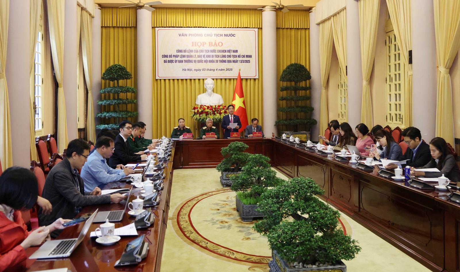 Sáng 3/4, Văn phòng Chủ tịch nước tổ chức họp báo công bố lệnh của Chủ tịch nước về Pháp lệnh quản lý, bảo vệ Khu Di tích Lăng Chủ tịch Hồ Chí Minh.