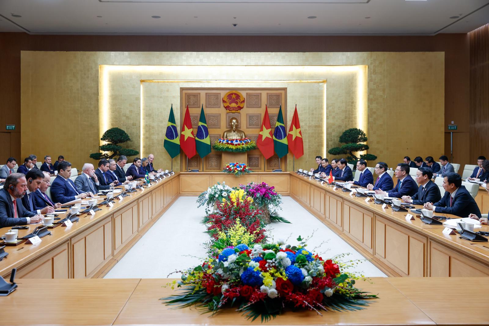 Tại hội đàm, Thủ tướng Chính phủ Phạm Minh Chính nhắc lại ấn tượng sâu sắc về đất nước, con người Brazil và các cuộc gặp với Tổng thống Brazil Luiz Inácio Lula da Silva, gần đây nhất là trong chuyến thăm chính thức Brazil vào tháng 9/2023 và cuộc hội đàm song phương vào tháng 11/2024 tại Rio de Janeiro, nơi hai bên ra Tuyên bố nâng cấp quan hệ song phương lên Đối tác Chiến lược.