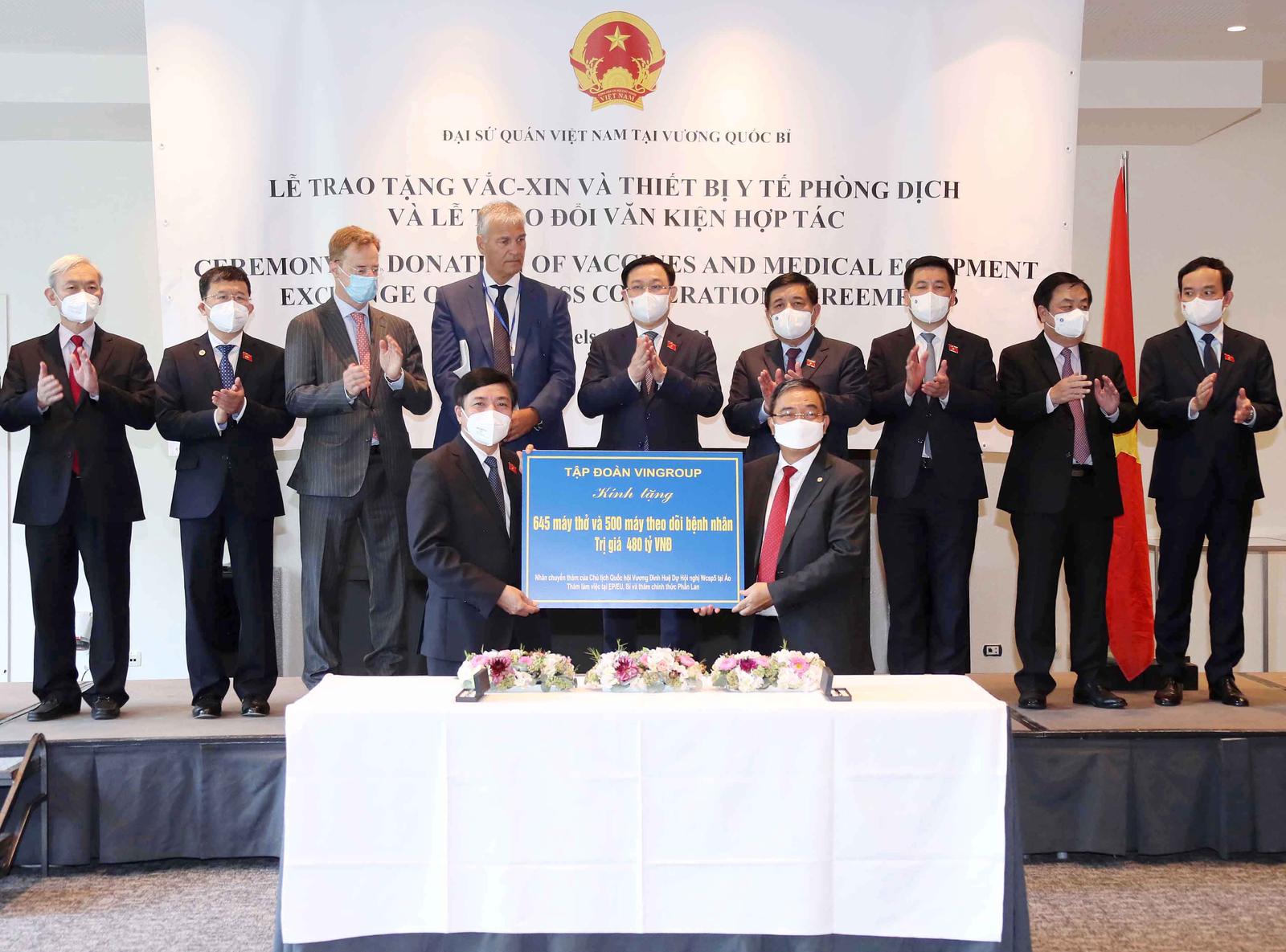 Cụ thể, Phòng Thương mại châu Âu tặng các thiết bị y tế trị giá 962 nghìn Euro, tương ứng 27 tỷ đồng; Tập đoàn Vingroup tặng 645 máy thở và 500 máy Monitor trị giá 17,6 triệu Euro tương đương 480 tỷ đồng; Mạng lưới Đổi mới sáng tạo Việt - Đức VGI e.V., Diễn đàn Đổi mới sáng tạo và Kinh tế Đức - Việt DVIW e.V., Công ty TP Medicare GmbH, Công ty Hợp Nhất tặng 100.000 khẩu trang và 7.000 kit xét nghiệm nhanh COVID với giá trị 53.000 euro, tương đương 1,5 tỷ đồng.