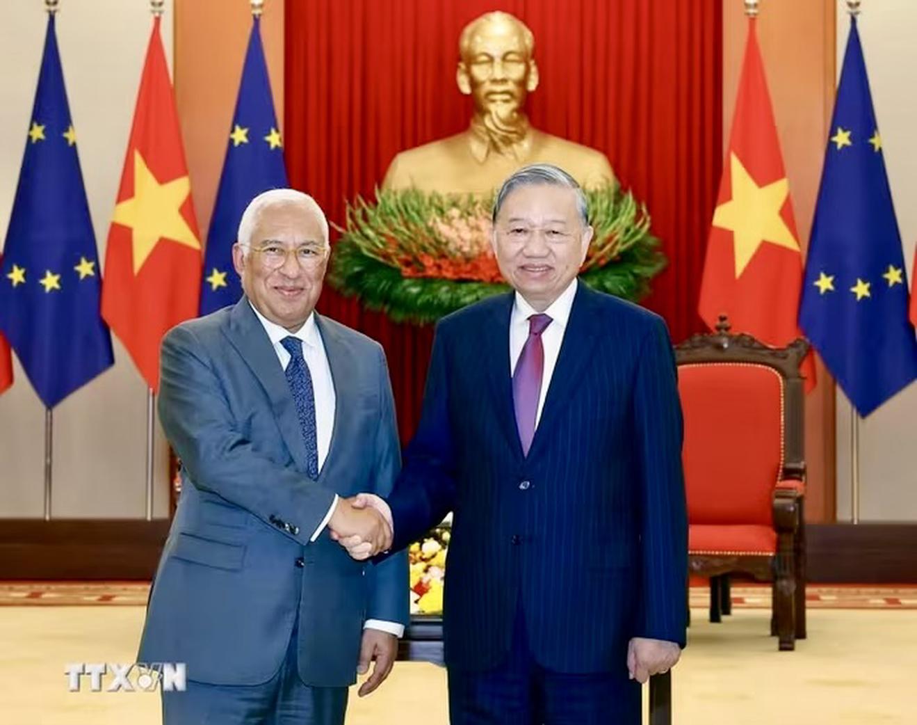 Tổng Bí thư Tô Lâm và Chủ tịch Hội đồng châu Âu Antonio Costa. Ảnh: TTXVN