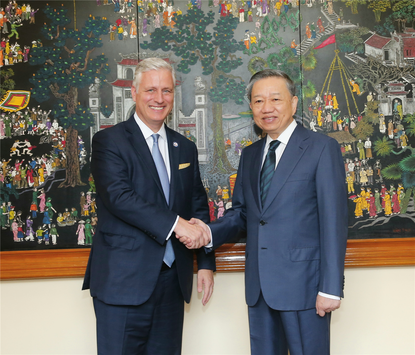 Bộ trưởng Tô Lâm và Cố vấn An ninh quốc gia Hoa Kỳ Robert O'Brien tại buổi tiếp. Ảnh: CAND