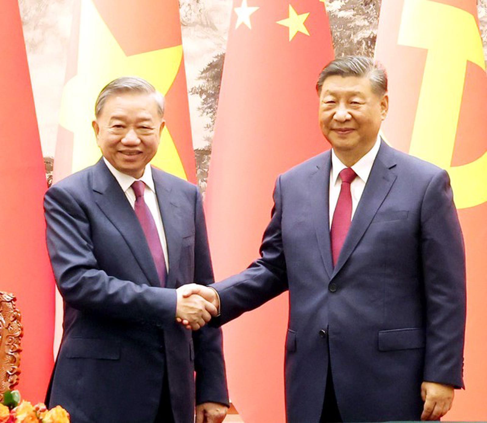 Tổng Bí thư, Chủ tịch nước Tô Lâm và Tổng Bí thư, Chủ tịch nước Trung Quốc Tập Cận Bình trong chuyến thăm cấp Nhà nước tới Trung Quốc tháng 8/2024. Ảnh: TTXVN