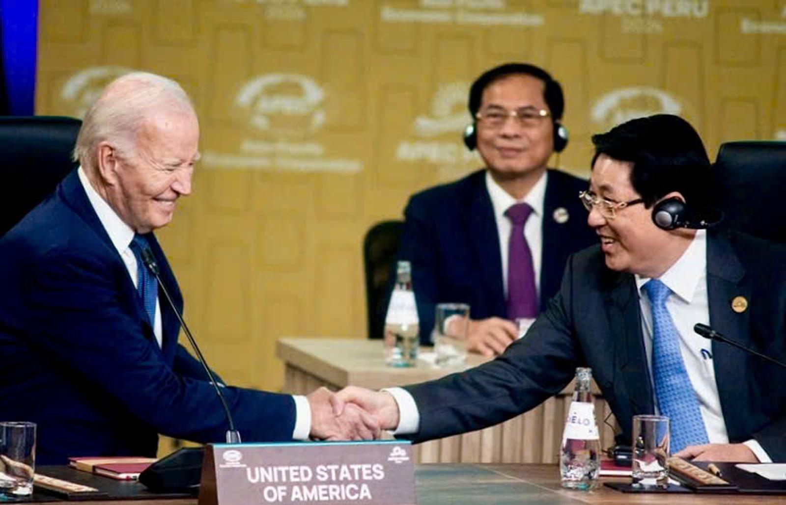 Chủ tịch nước Lương Cường và Tổng thống Hoa Kỳ John Biden tại phiên Đối thoại giữa các nhà lãnh đạo APEC với các khách mời hồi tháng 11/2024, tại Peru. Ảnh: TTXVN