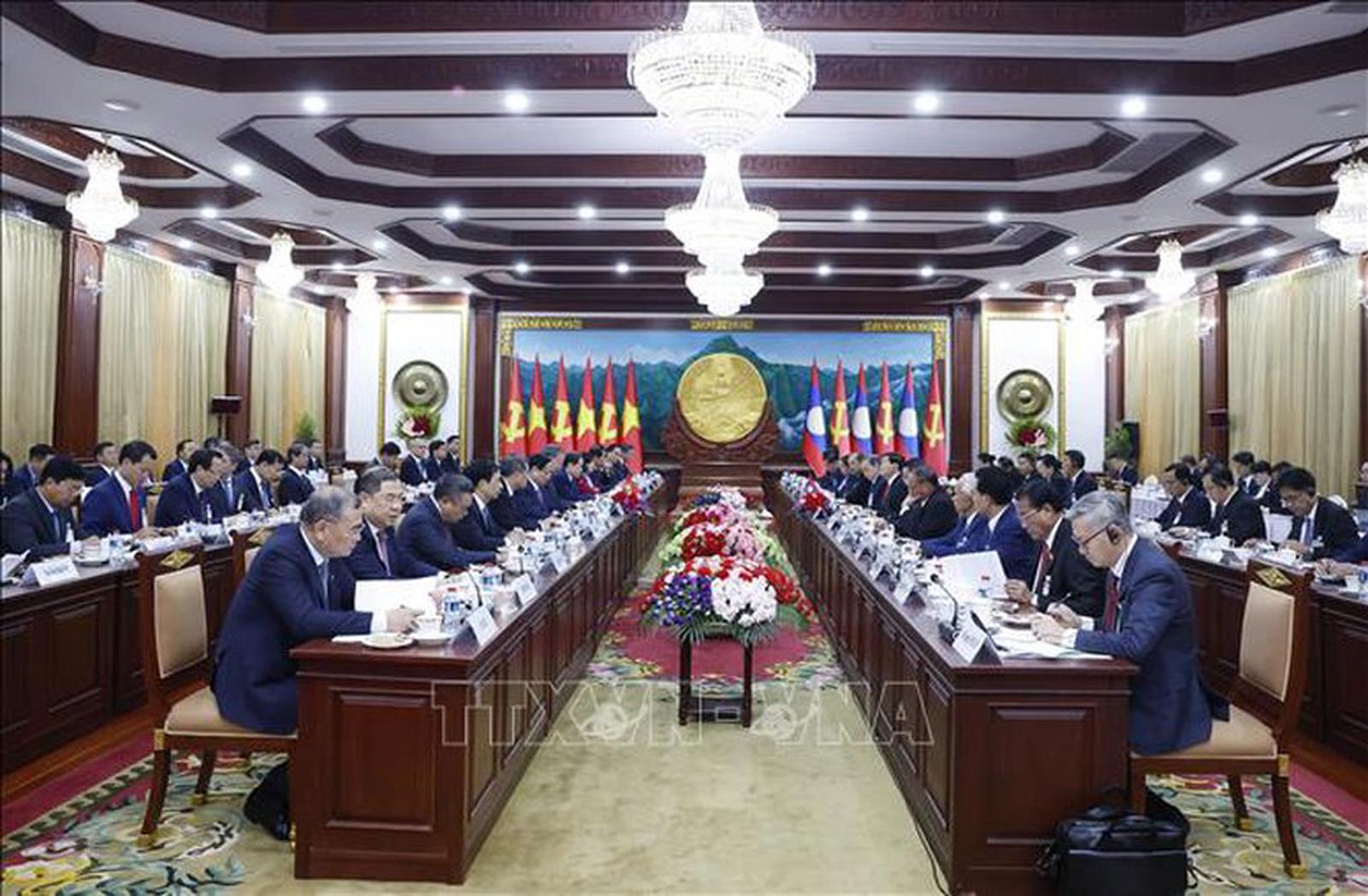 Tổng Bí thư Tô Lâm và Tổng Bí thư, Chủ tịch nước Lào Thongloun Sisoulith hội đàm. Ảnh: TTXVN
