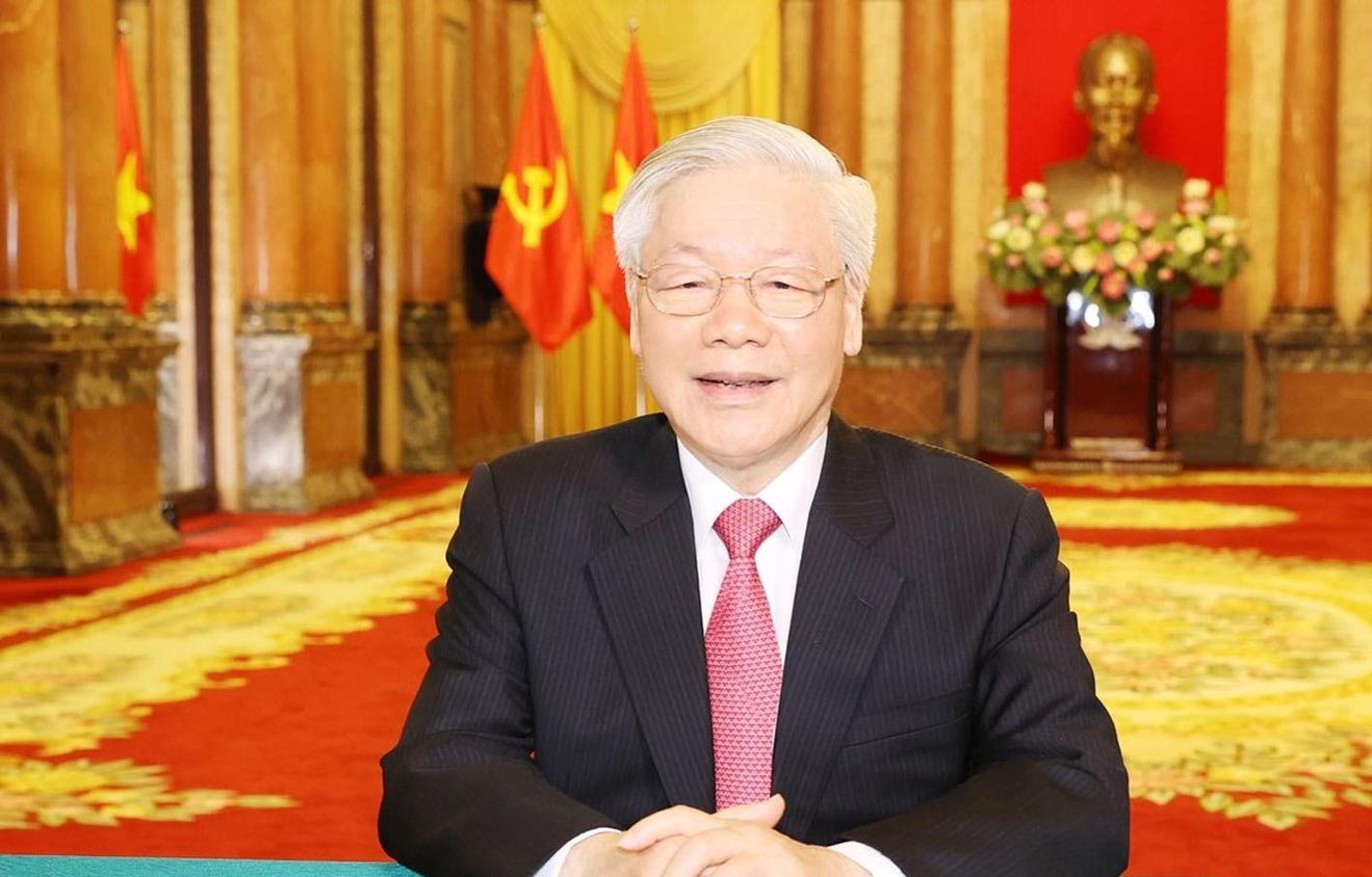 Tổng Bí thư, Chủ tịch nước Nguyễn Phú Trọng gửi thông điệp tới Phiên thảo luận chung cấp cao Khóa 75 Đại hội đồng Liên hợp quốc. (Ảnh: Trí Dũng/TTXVN)