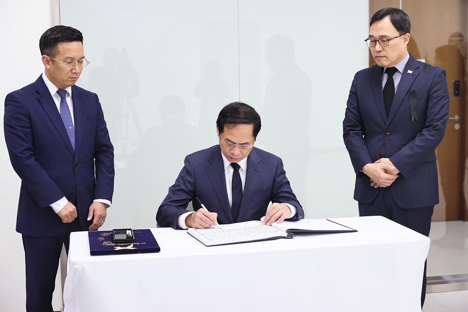 Ghi sổ tang tại Đại sứ quán Hàn Quốc tại Hà Nội, Phó Thủ tướng, Bộ trưởng Ngoại giao Bùi Thanh Sơn bày tỏ sự bàng hoàng, đau xót khi nhận được thông tin về vụ tai nạn máy bay.