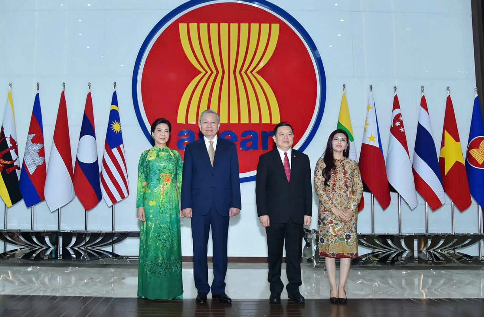 (Thanh tra) - Hôm nay (10/3), Tổng Bí thư Tô Lâm và Phu nhân cùng Đoàn Đại biểu cấp cao Việt Nam đã tới thăm Ban Thư ký ASEAN tại Thủ đô Jakarta. Tại đây, Tổng Bí thư Tô Lâm khẳng định Việt Nam luôn coi trọng và đóng góp hết sức mình cho sự phát triển của ASEAN trong 30 năm qua vì những mục tiêu lớn lao của ASEAN.