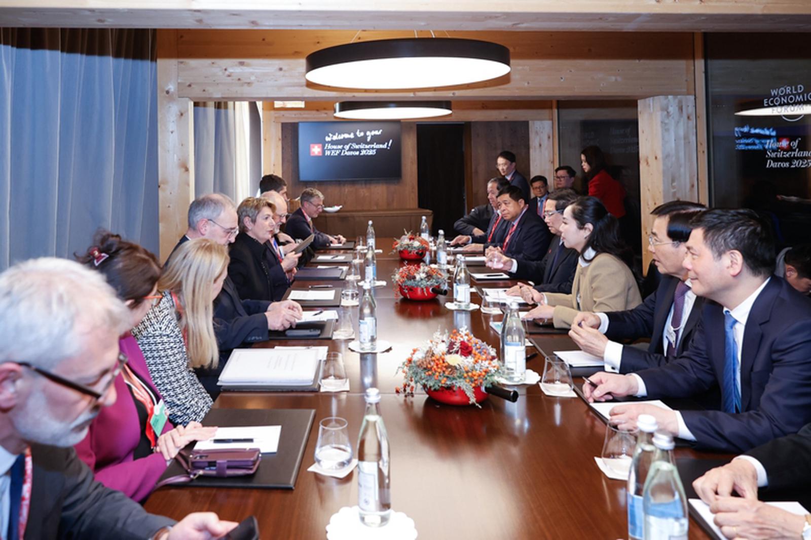 Nhân dịp dự Hội nghị thường niên lần thứ 55 của Diễn đàn Kinh tế Thế giới (WEF) tại Davos, ngày 21 tháng 1 năm 2025, Thủ tướng Chính phủ nước Cộng hòa xã hội chủ nghĩa Việt Nam Phạm Minh Chính đã có cuộc hội đàm với Tổng thống Liên bang Thụy Sĩ Karin Keller-Sutter.