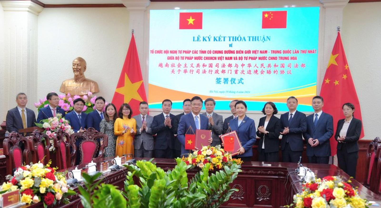 Hai Bộ trưởng ký Thỏa thuận về việc tổ chức Hội nghị giữa các cơ quan tư pháp của các tỉnh có chung đường biên giới Việt Nam – Trung Quốc lần thứ nhất. Ảnh: AN
