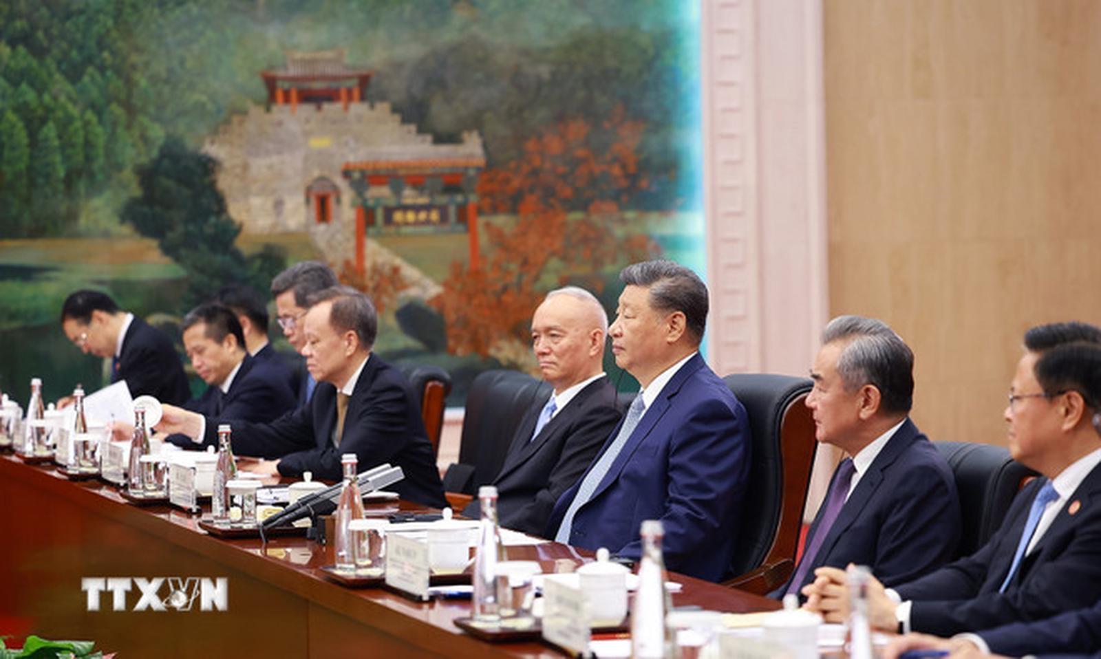 Đánh giá cao các đề xuất hợp tác cũng như những đóng góp tích cực của Thủ tướng Phạm Minh Chính đối với quan hệ Việt-Trung thời gian qua, Tổng Bí thư, Chủ tịch Trung Quốc Tập Cận Bình khẳng định Trung Quốc ủng hộ Việt Nam tổ chức tốt Đại hội đại biểu toàn quốc lần thứ XIV của Đảng, bước đi thành công trên con đường Xã hội chủ nghĩa.