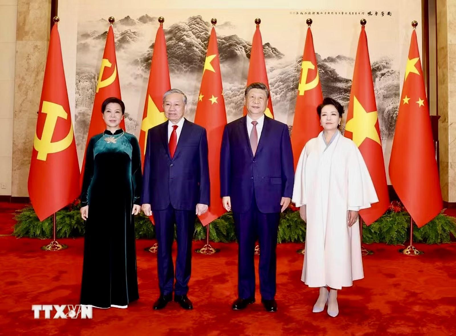 Tổng Bí thư, Chủ tịch nước Tô Lâm và Phu nhân cùng Tổng Bí thư, Chủ tịch nước Trung Quốc Tập Cận Bình và Phu nhân chụp ảnh chung. Ảnh: TTXVN
