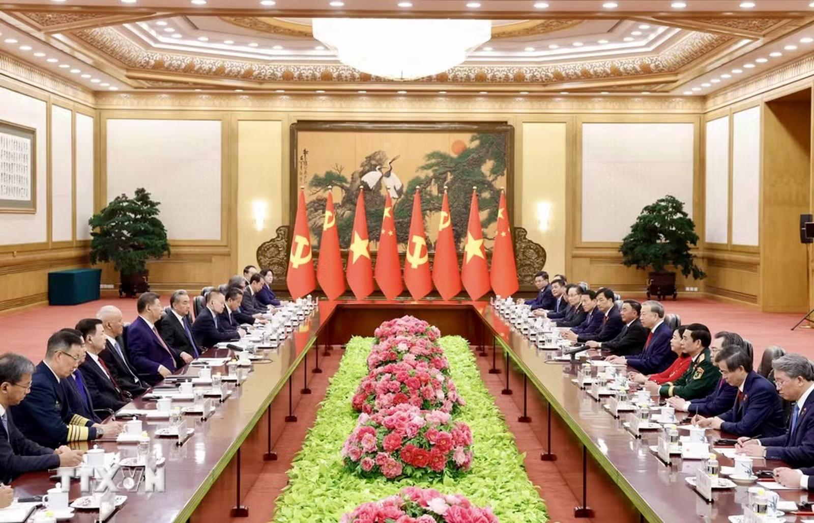 Toàn cảnh cuộc hội đàm giữa Tổng Bí thư, Chủ tịch nước Tô Lâm với Tổng Bí thư, Chủ tịch nước Trung Quốc Tập Cận Bình. Ảnh: TTXVN