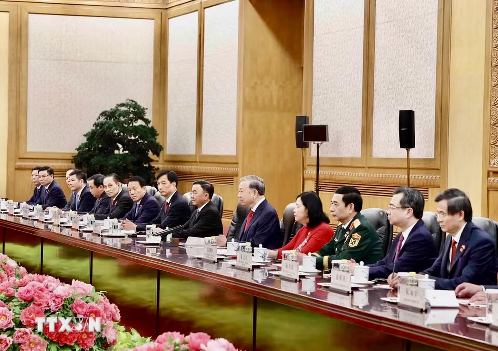 Sáng 15/4, sau Lễ đón cấp Nhà nước tại Đại lễ đường nhân dân, Thủ đô Bắc Kinh, Trung Quốc theo nghi thức cao nhất dành cho nguyên thủ quốc gia, Tổng Bí thư, Chủ tịch nước Tô Lâm đã hội đàm với Tổng Bí thư, Chủ tịch nước Trung Quốc Tập Cận Bình.