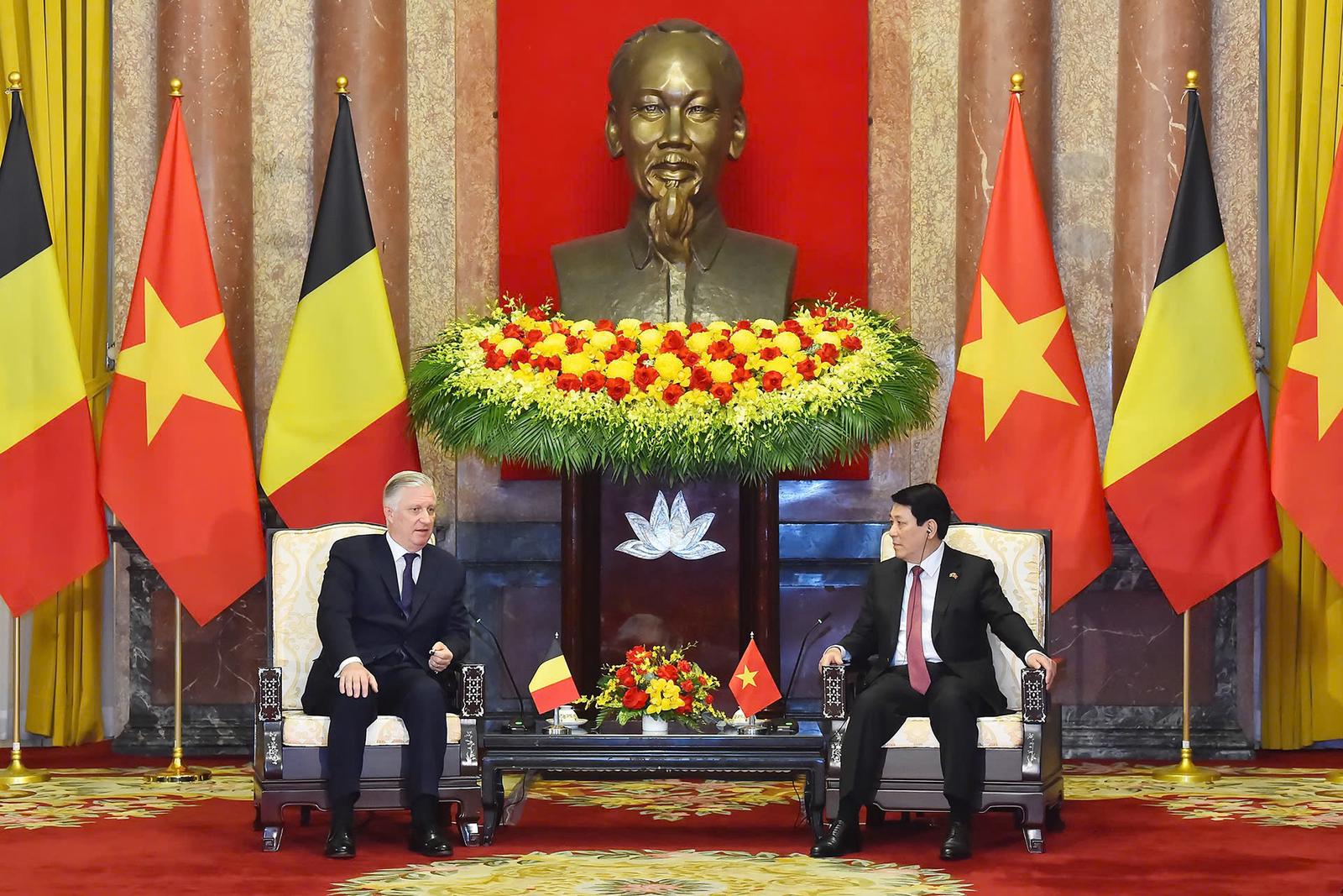 Chủ tịch nước Lương Cường và Nhà vua Bỉ Phi-líp hội kiến. Ảnh: N.Bắc