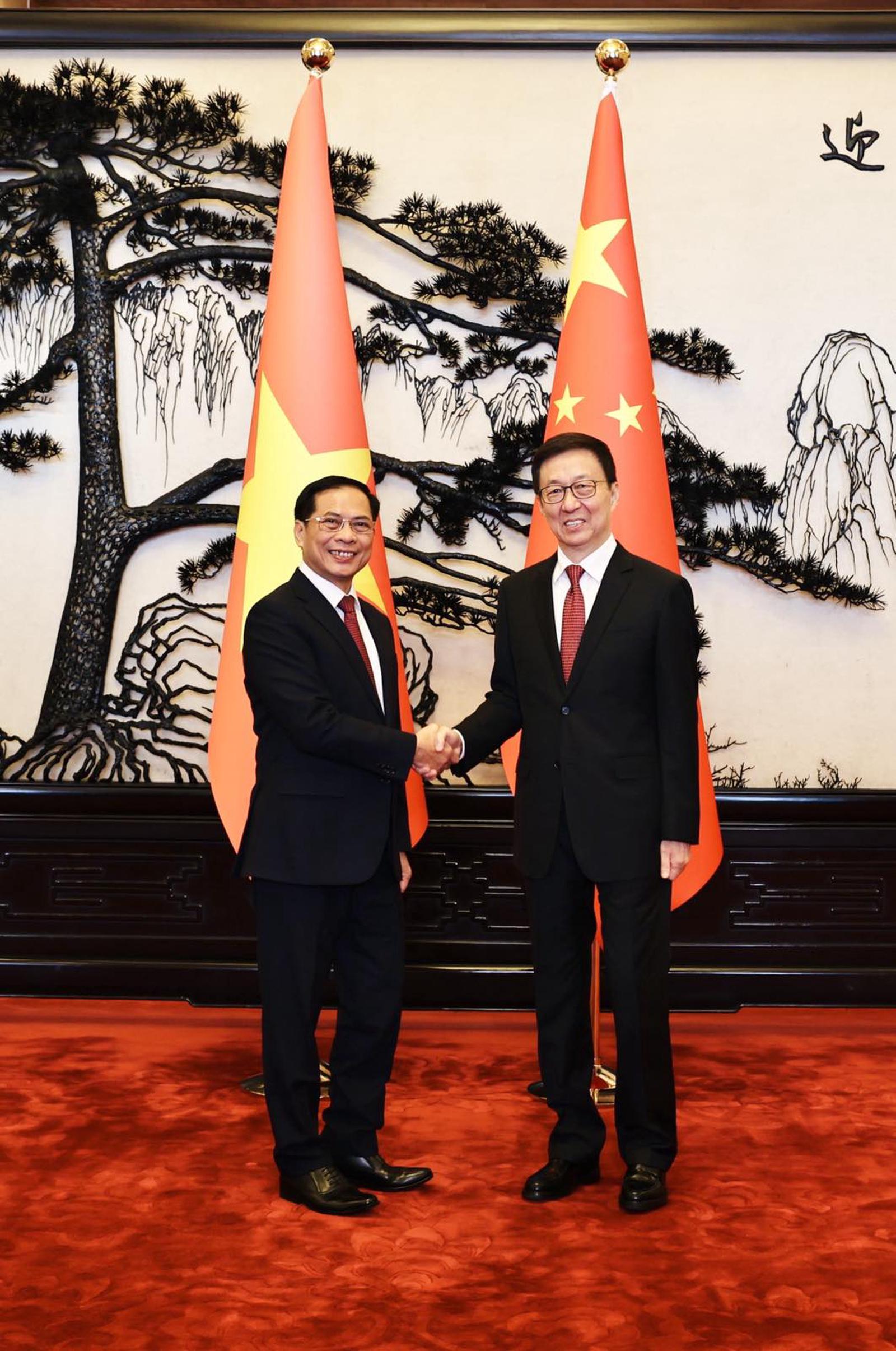Phó Thủ tướng Chính phủ, Bộ trưởng Bộ Ngoại giao Bùi Thanh Sơn và Phó Chủ tịch nước Trung Quốc Hàn Chính. Ảnh: BNG