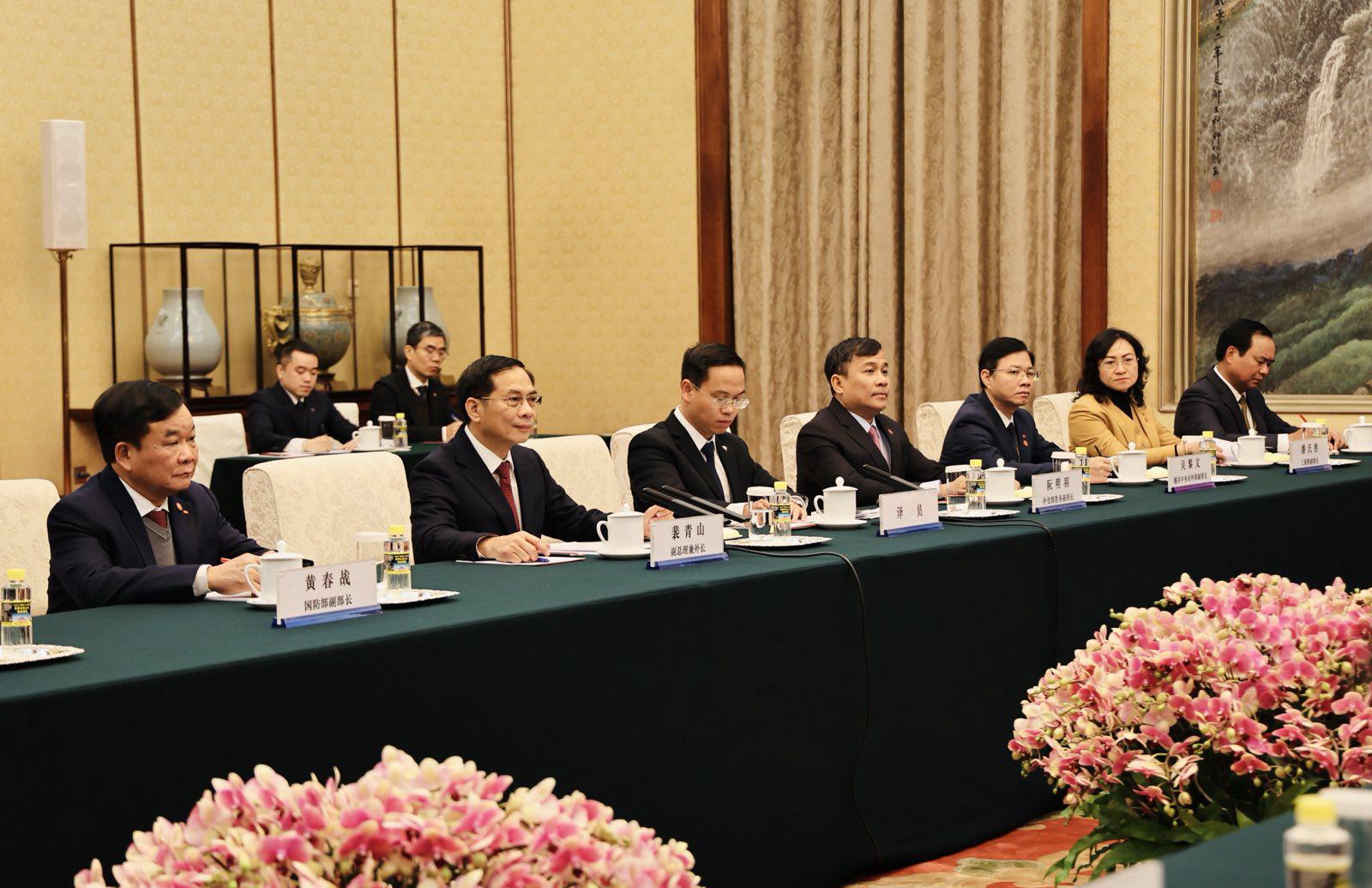 Trao đổi ý kiến về phương hướng thúc đẩy hợp tác song phương thời gian tới, hai bên nhất trí tăng cường chỉ đạo các cấp, các ngành, các địa phương hai nước phối hợp chặt chẽ, tích cực triển khai các thỏa thuận và nhận thức chung cấp cao, góp phần làm sâu sắc hơn nữa quan hệ Đối tác hợp tác chiến lược toàn diện, Cộng đồng chia sẻ tương lai Việt Nam - Trung Quốc có ý nghĩa chiến lược.