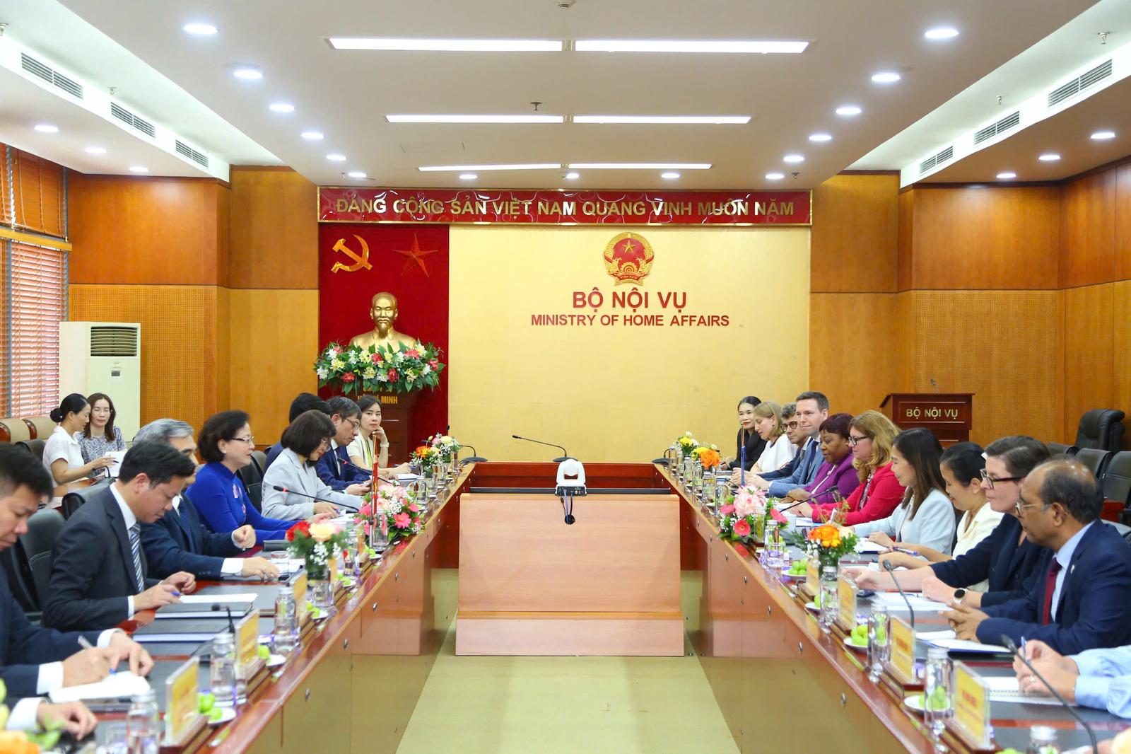 Do đó, Bộ trưởng Phạm Thị Thanh Trà đề nghị các tổ chức của Liên hợp quốc tại Việt Nam quan tâm, chia sẻ kinh nghiệm, hai bên cùng nhau hợp tác trên 04 lĩnh vực mà Bộ Nội vụ đang tập trung triển khai.