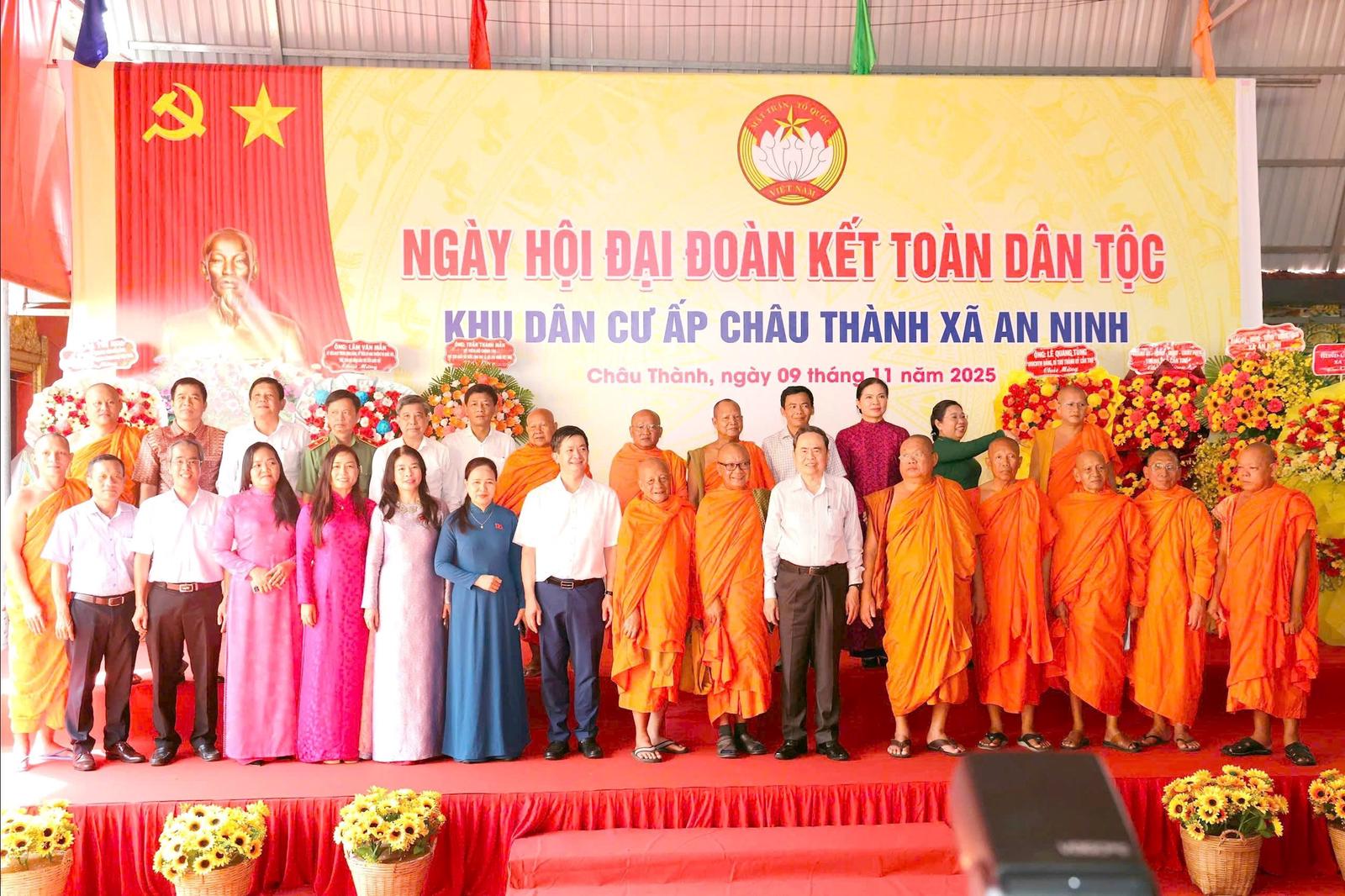 Ngày 9/11, Chủ tịch Quốc hội Trần Thanh Mẫn dự Ngày hội đại đoàn kết toàn dân tộc với khu dân cư ấp Châu Thành, xã An Ninh, thành phố Cần Thơ. Ảnh: MTTQ