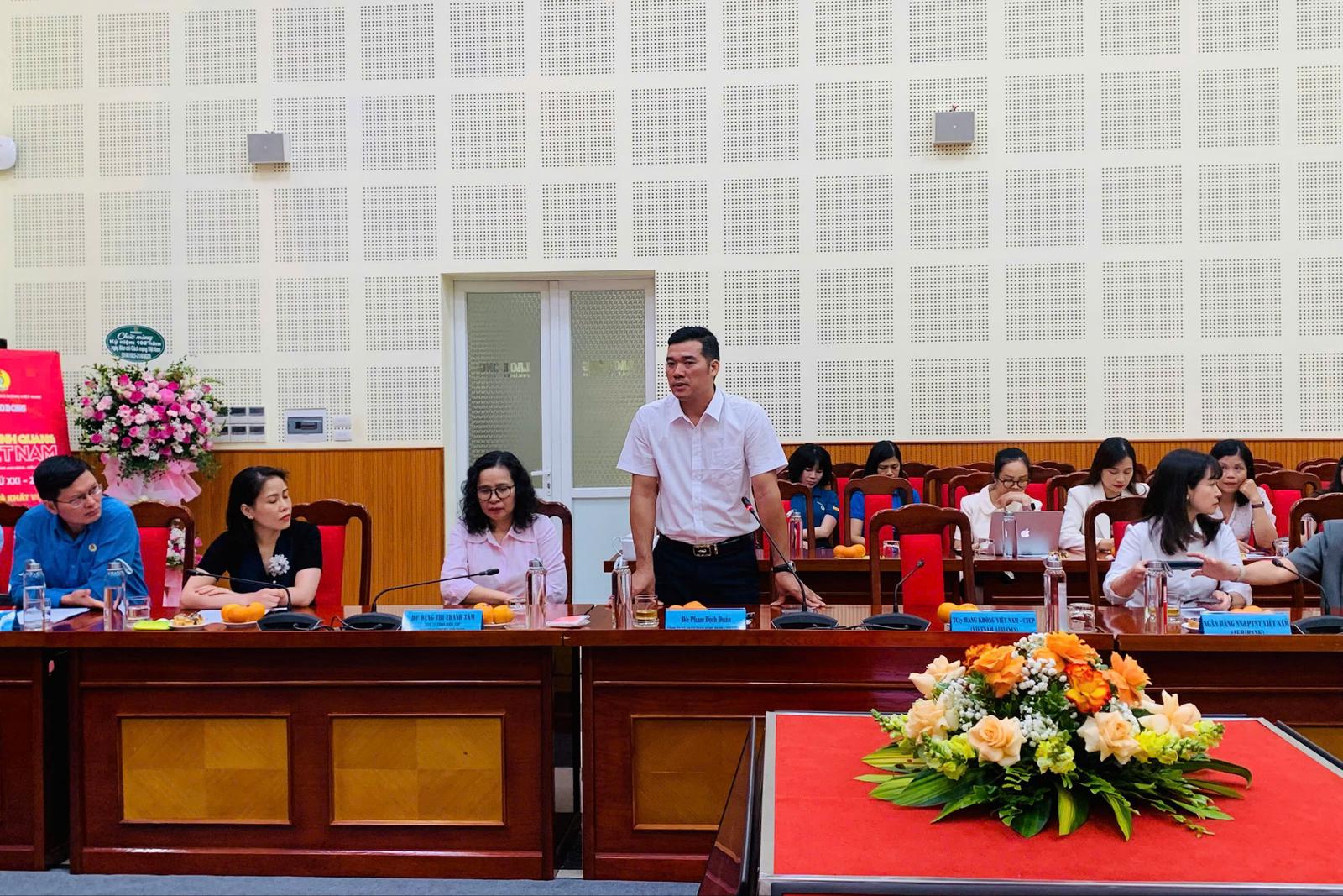 Ông Phạm Đình Duẩn, công nhân Phân xưởng Khai thác 14, Công ty cổ phần Than Vàng Danh – Vinacomin phát biểu tại buổi họp báo. Ảnh: TQ