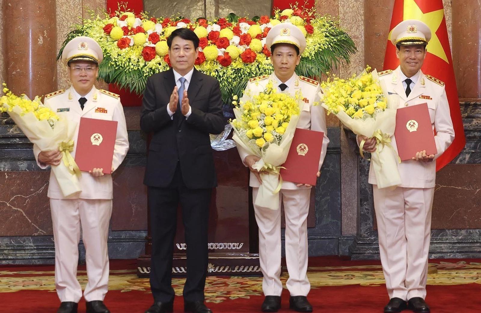 Sáng 14/6, Chủ tịch nước Lương Cường, Chủ tịch Hội đồng Quốc phòng và An ninh, Thống lĩnh các lực lượng vũ trang, đã trao quyết định thăng cấp bậc hàm Thượng tướng với 3 Thứ trưởng Bộ Công an.