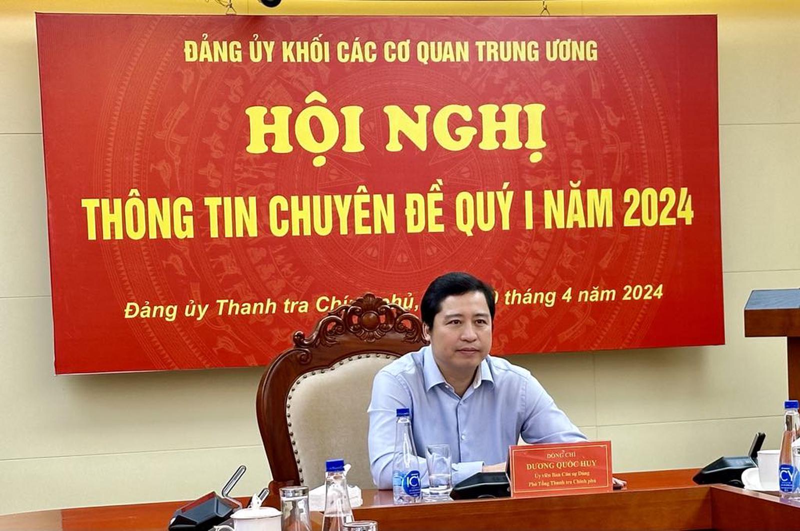 Phó Tổng Thanh tra Dương Quốc Huy chủ trì tại điểm cầu Thanh tra Chính phủ. Ảnh: PA