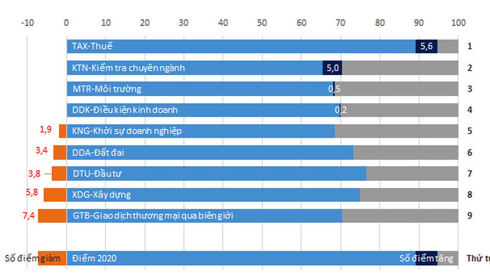 Còn các nhóm thủ tục hành chính khởi sự doanh nghiệp, đầu tư, xây dựng, đất đai và giao dịch thương mại qua biên giới có điểm giảm so với APCI 2019.