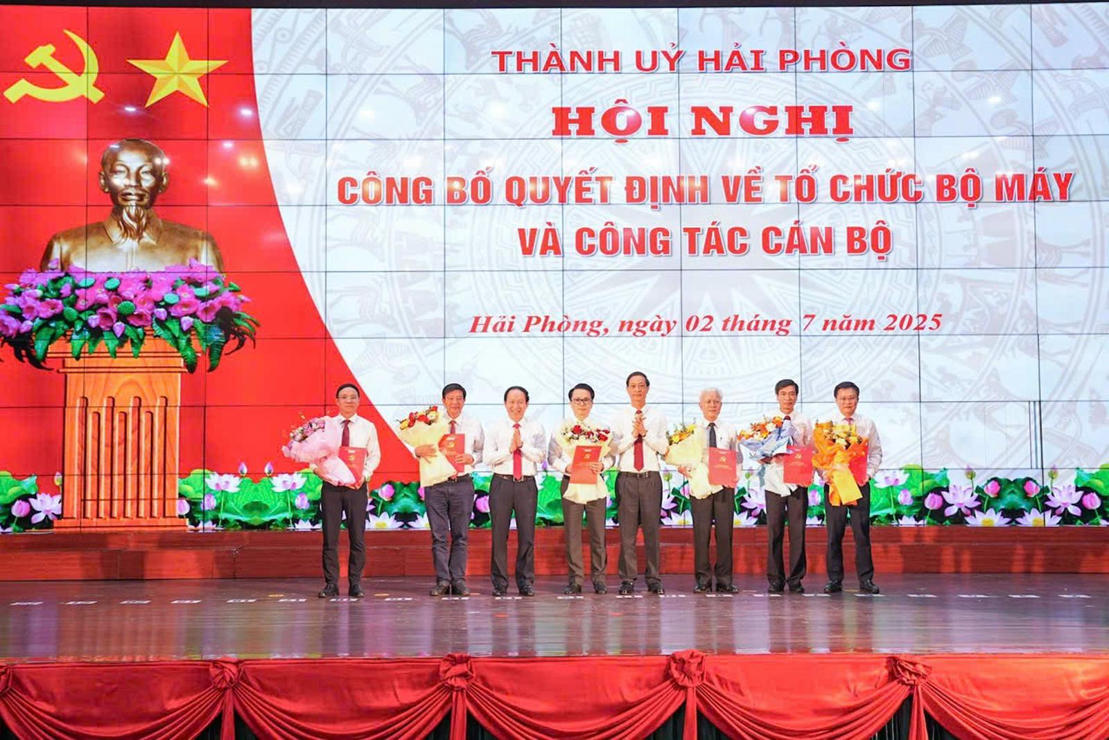 Đồng thời trao các Quyết định của Chủ tịch UBND thành phố về bổ nhiệm cán bộ lãnh đạo quản lý các cơ quan chuyên môn thuộc UBND thành phố Hải Phòng sau hợp nhất và các Quyết định, Nghị quyết của Thường trực HĐND thành phố bổ nhiệm cán bộ lãnh đạo quản lý thuộc Văn phòng Đoàn đại biểu Quốc hội và HĐND, các Ban của HĐND thành phố.