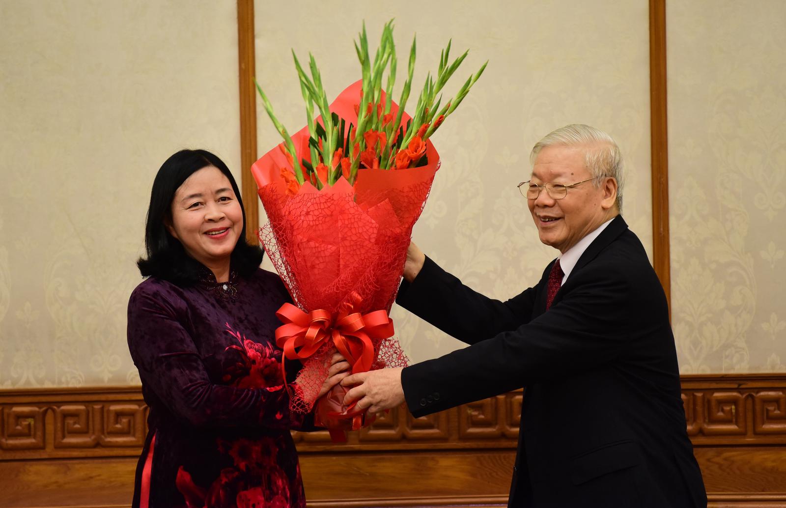 Thay mặt Bộ Chính trị, Tổng Bí thư Nguyễn Phú Trọng đã trao quyết định của Bộ Chính trị phân công bà Trương Thị Mai, Ủy viên Bộ Chính trị, Trưởng Ban Dân vận Trung ương giữ chức Trưởng Ban Tổ chức Trung ương