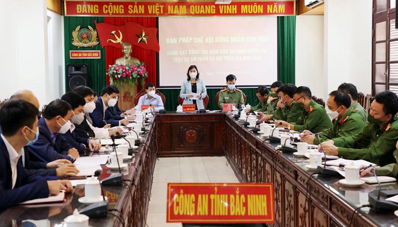 Ngày 11/11, đoàn giám sát của HĐND tỉnh Bắc Ninh đã thực hiện giám sát tại Công an tỉnh về công tác đảm bảo an ninh chính trị, trật tự an toàn xã hội trên địa bàn tỉnh.