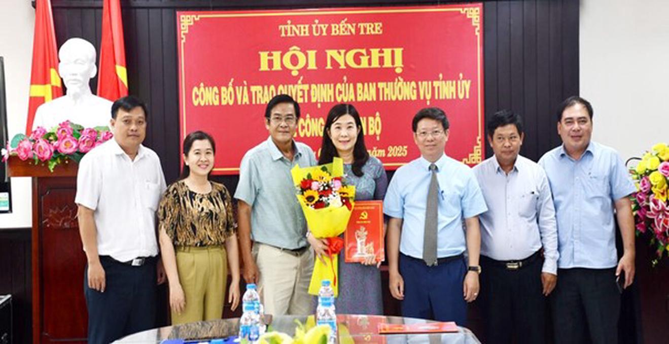 (Thanh tra) - Bến Tre vừa công bố Quyết định số 2047-QĐNS/TW ngày 2/4/2025 của Ban Bí thư Trung ương Đảng về việc chuẩn y bà Lê Thị Nghĩa Nhân, Tỉnh ủy viên, Chánh Văn phòng Tỉnh ủy tham gia Ủy ban Kiểm tra (UBKT) Tỉnh ủy và giữ chức Phó Chủ nhiệm UBKT Tỉnh ủy nhiệm kỳ 2020 - 2025.